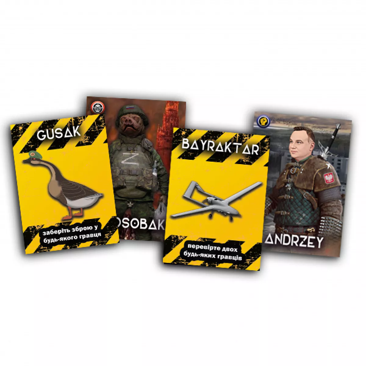 Протистояння Героїв та гидких посіпак орків перенесено тепер і у настільний формат! У грі Герої проти орків гравці на початку отримують по 3 карти, та залежно від їх виду (належності) розділяються на дві команди, нікому не показуючи своїх карт. Метою кожної з команд є перемога над головним героєм команди супротивника! Для цього вам треба взяти зброю, обрати гравця та завдати пострілу. Проте зауважте, що з кожною дією ви будете відкривати по одній зі своїх карт! Тож треба бути дуже обачним, аби не видати зайву інформацію супротивнику передчасно. Якщо ж ви хочете трохи відволіктися від боїв та битв, зверніть увагу на гру Мемологія. Паляниця у якій можна вдосталь посміятися над усіма подіями, що сталися з початку 2022 року.