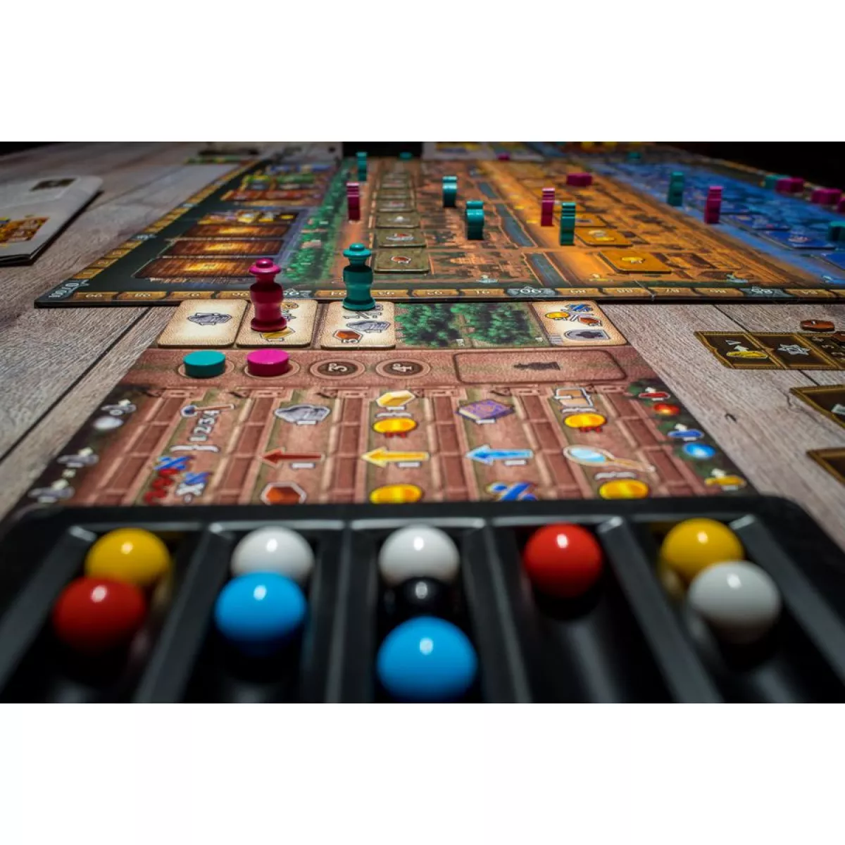 Механіка Action Drafting, Dice Rolling, Income, Set Collection, Variable Player Powers, Variable Set-up