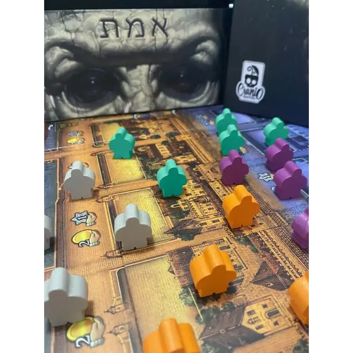 Ґолем (Golem) - це стратегічна настільна гра, від Сімоне Лучани, Вірджініо Джильо і Фламіні Бразіні, тієї самої команди, що створила Grand Austria Hotel і Lorenzo il Magnifico. Розпочалася історія Ґолема в далекому 1584 році у Празі. За легендою, саме там рабин Льова зробив першу спробу створити цього глиняного велетня. Достатньо лиш на його чолі написати «Істина» та вкласти слово Боже йому до рота – і він має ожити. І так Ґолем ожив! Лишилось тільки дати йому наказ – і той стане одним із найкорисніших ваших помічників, поки не станеться збій. А чи готові ви створити власних глиняних велетнів у новій локалізації від Lord of Boards, що так і називається – Ґолем? То як вашими Ґолемами користуватись? Це комплексна стратегія для 1-4 гравців (так, тут навіть існує соло-режим), тому спочатку із правилами буде розібратися доволі непросто. Для повного розуміння ігрового процесу доведеться зіграти декілька партій, щоби осягнути всі переваги та недоліки місцевих механік. Усього в партії на вас очікує 4 раунди. Кожен із них складається із 7 послідовних фаз: Розпочинається все з підготовки до раунду (ви ще ж не втомились від цього?). Очевидно, що в першому раунді цей етап пропускається. У цей момент оновлюються кульки в синагозі, плитки дій і книги в бібліотеці. Усі Ґолеми рухаються вправо по вулиці. Вам їх не вдасться контролювати, хоч і можливо передбачити розвиток подій. Бажано зробити так, щоби він не доходив до кінця – інакше ви будете втрачати переможні очки, що небажано. Виконання дій – ось момент, коли ви можете розгулятись. Правда, і тут є обмеження – можна буде виконати лише 3 дії за весь раунд. Варіантів усього два: поставити рабина на плитку дії чи взяти кульку та активувати її ефект. Залежно від узятої кульки ще й переміститься ваш учень. За це вам буде дозволено активувати Ґолемів за знання, створювати нових чи поліпшувати їх за глину, поліпшувати артефакти за монети, оновлювати плитки досліджень за знання та купувати за них же книжки. У Рабина ж опцій буде куди більше, і всі ці варіанти будуть ще й змінюватися щораунду. Можна навіть спасувати, що все одно дозволить виконати дію кульки в майбутньому, але з оновленим пулом у синагозі. Розмістіть маркери ходів відповідно до того, як стоять рабини гравців. З’являється можливість скористатися персонажем поточного раунду. Для цього варто мати саме такий набір кульок. Опції доволі прості: взяти 3 монети або витратити таку ж кількість задля активації героя. Отримайте дохід, якщо маєте такий, після чого можна здійснити одне поліпшення. Останній етап – управління Ґолемом. Доведеться витратити знання, якщо якийсь із глиняних велетнів випереджає на вулиці відповідального за нього учня. Наприкінці четвертого раунду необхідно порахувати переможні бали. Переможе, звісно, той учасник, що матиме найбільшу кількість очок. Використовуйте глиняних велетнів, але не дайте їм усе зламати Настільна гра Ґолем (Golem) від Вірджиніо Джильї, Стефано Лучані та Фламінії Бразіні створена для тих, хто дійсно отримує задоволення від комплексних розваг. Варіативність цього проєкту на величезному рівні – всі партії обов’язково будуть несхожими одна на одну. Окрім того, всі учасники матимуть можливість обрати власний спосіб досягнення перемоги – й до кінця гри не буде зрозуміло, чи виграшна вона.