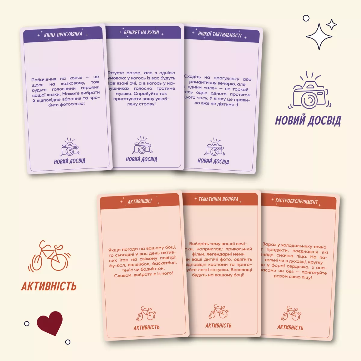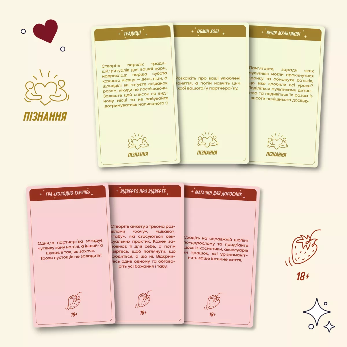 • Самопізнання та пізнання партнера: Деякі завдання допоможуть краще зрозуміти себе та свого партнера.
