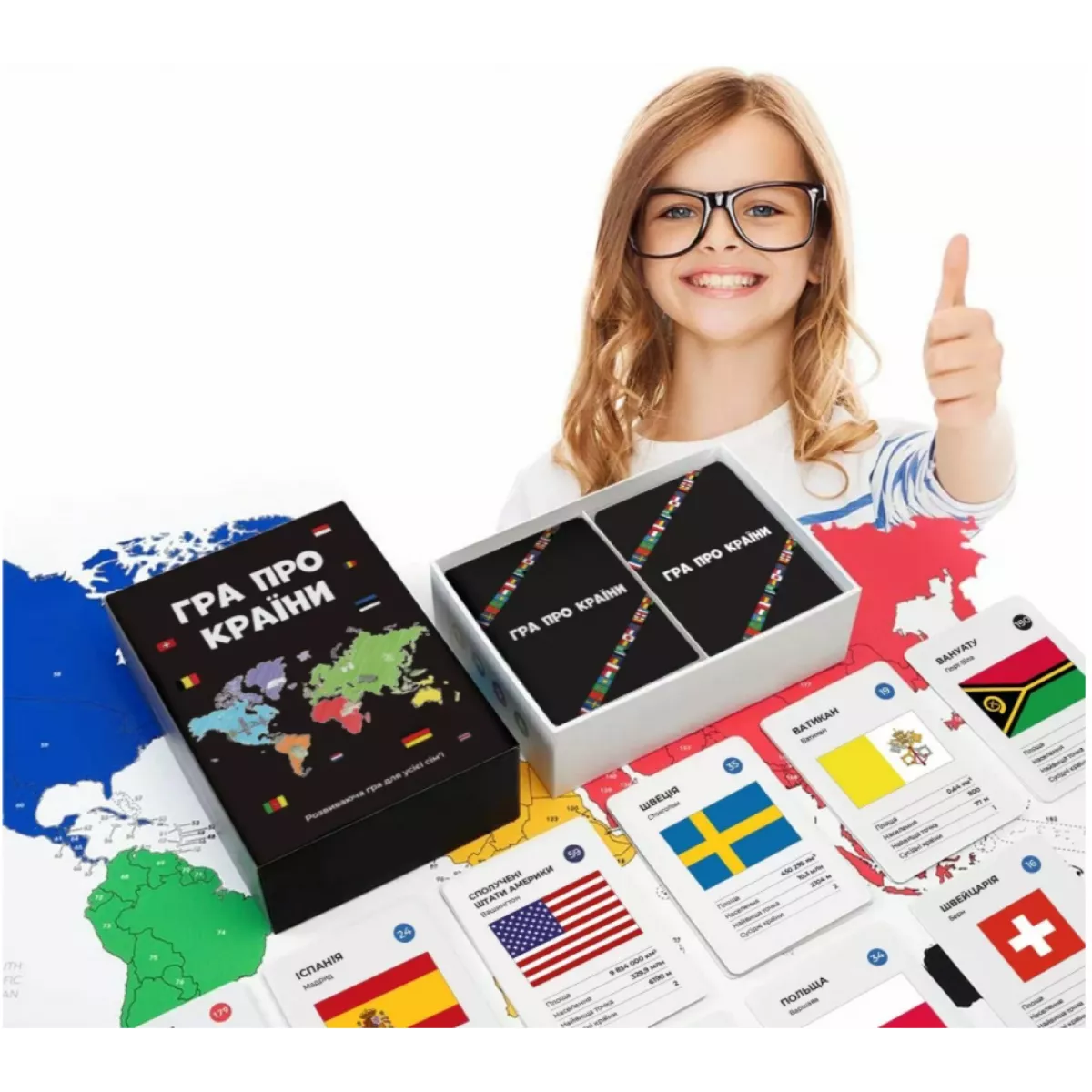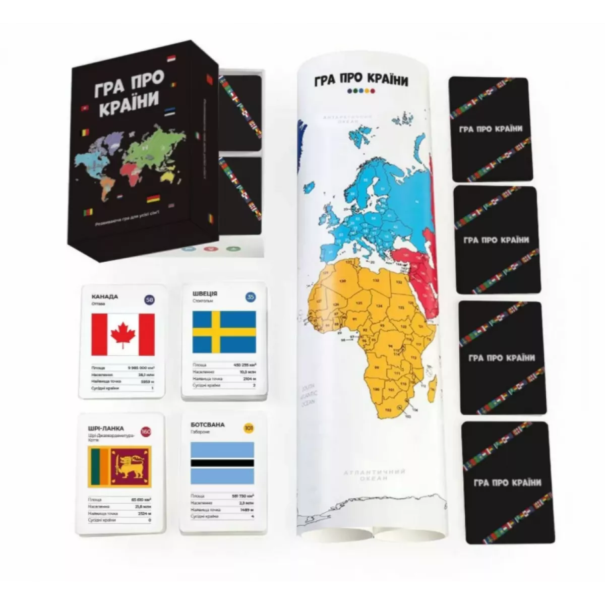 Настільна гра про Країни – чудовий спосіб не лише розважитися, але й підвищити свої знання про географію світу. Це ідеальна гра для сімейного вечора, де діти разом із батьками можуть дізнатися багато нового про країни у цікавій ігровій формі.