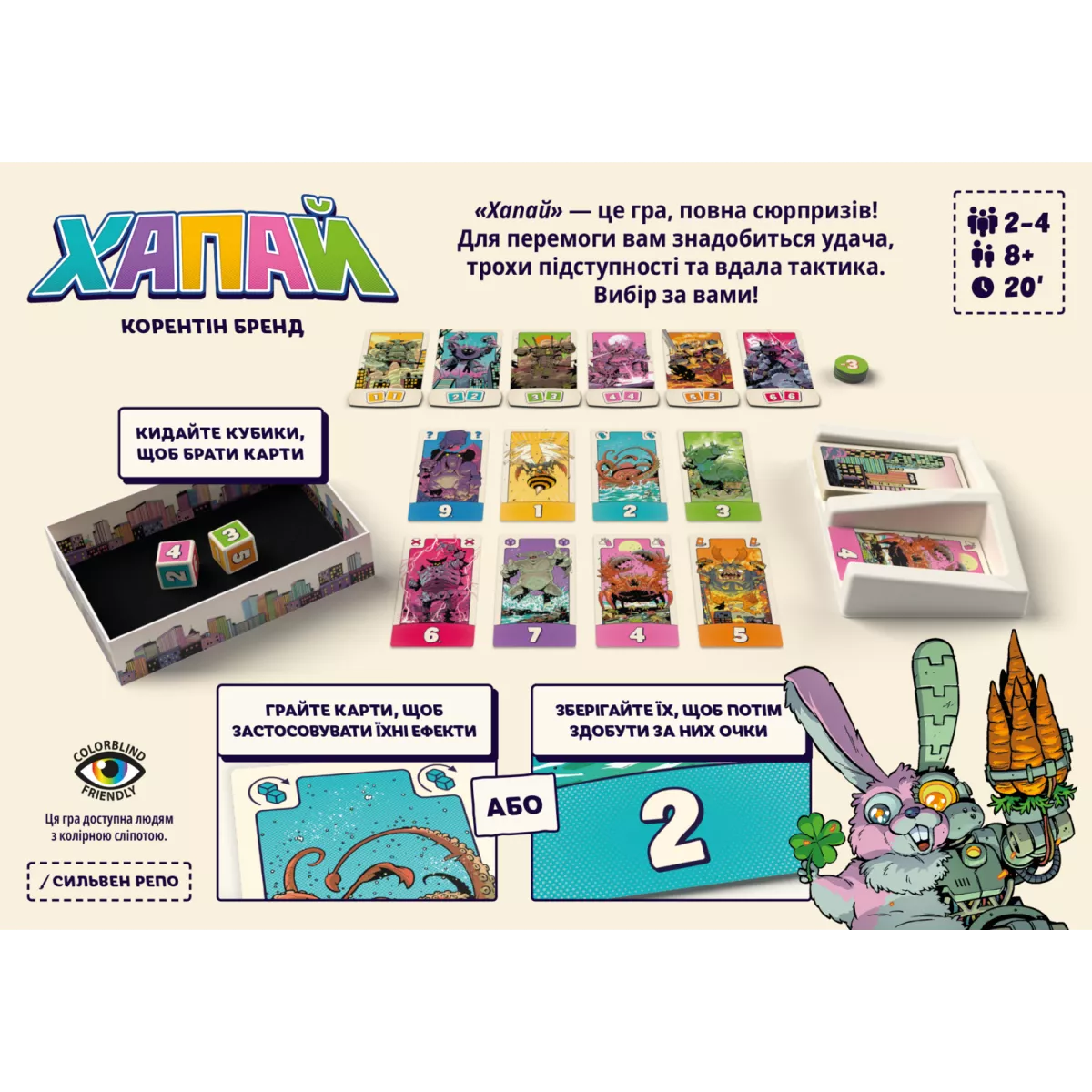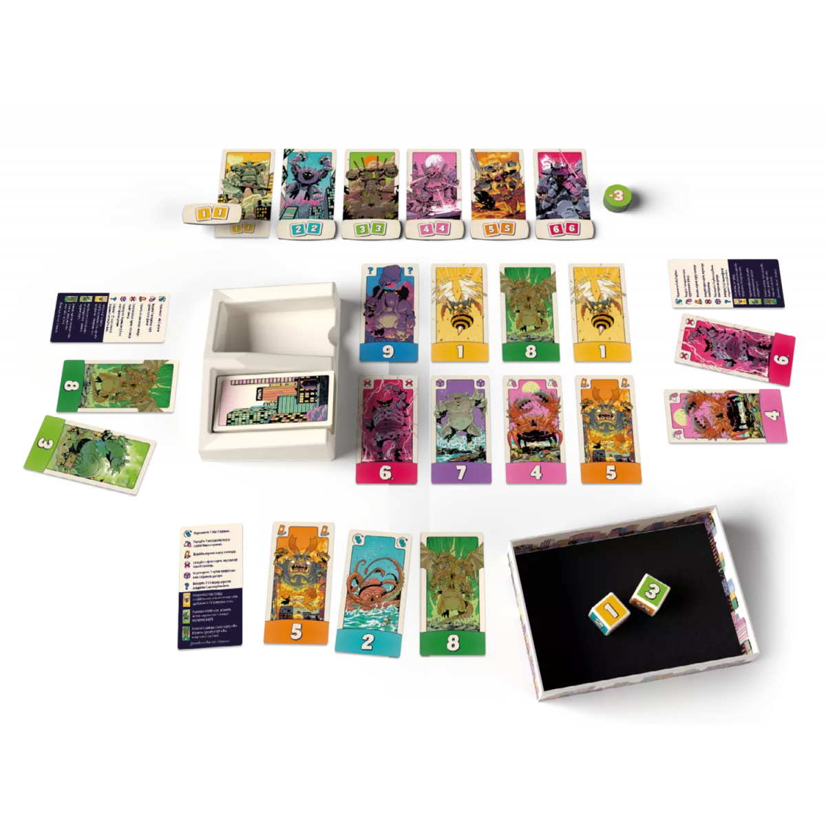 Перед вами швидка, яскрава, азартна, тактична карткова гра з кубиками, від яких залежатиме наскільки круті карти ви отримаєте.