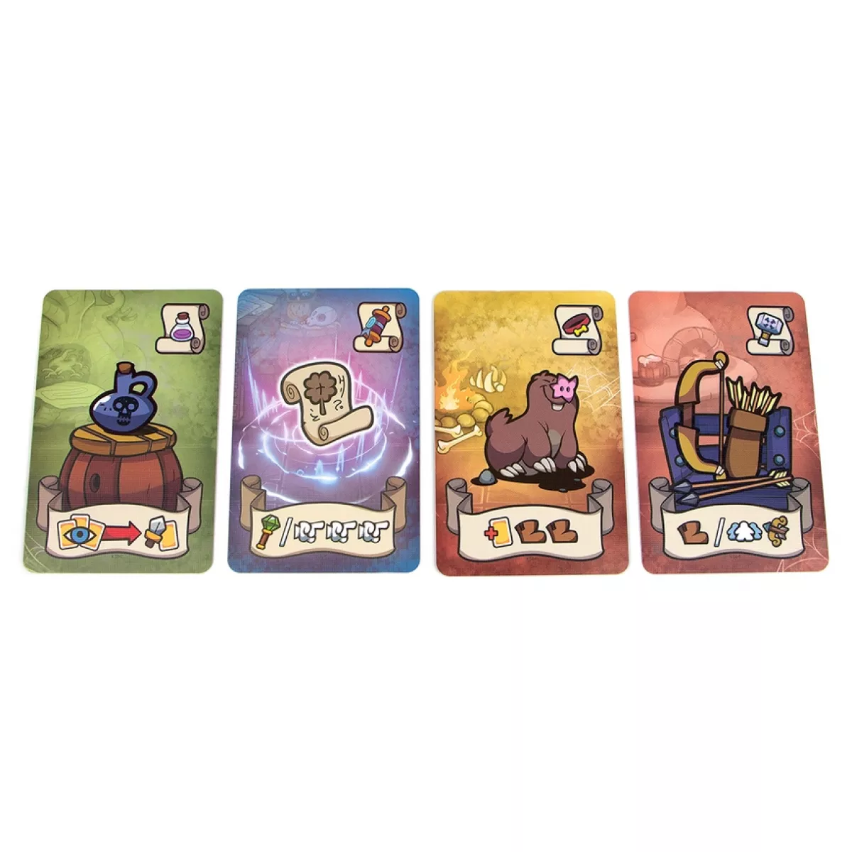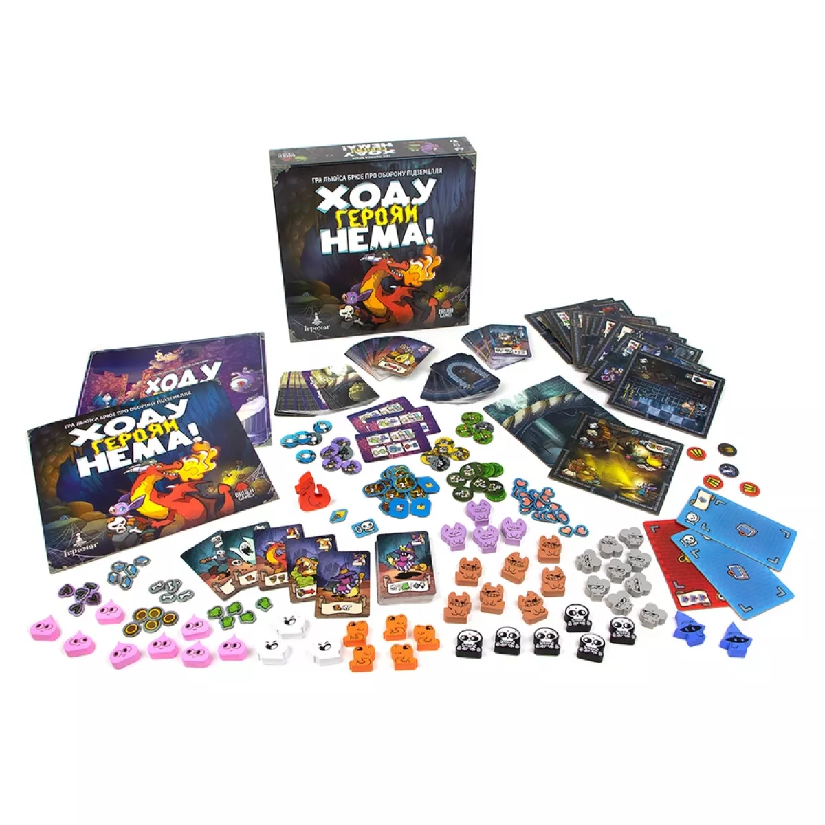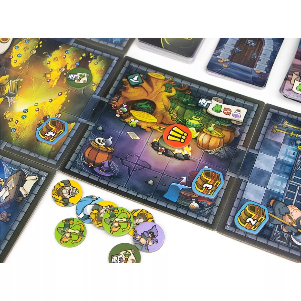 У коробці 45 фігурок-міплів монстрів, 12 кімнат підземелля, 80 карт гільдії, 16 карт героїв, 64 карти сценаріїв, 90 карт тактики, 9 карт планів, 28 карт предметів, 16 карт дій, 98 жетонів, 20 жетонів ресурсів, 5 жетонів пасток, 5 жетонів подій, 20 жетонів ран, 20 жетонів героїв, 16 жетонів скарбів, 10 жетонів порталів, 1 жетон активного гравця, 1 жетон хвилі 0, правила