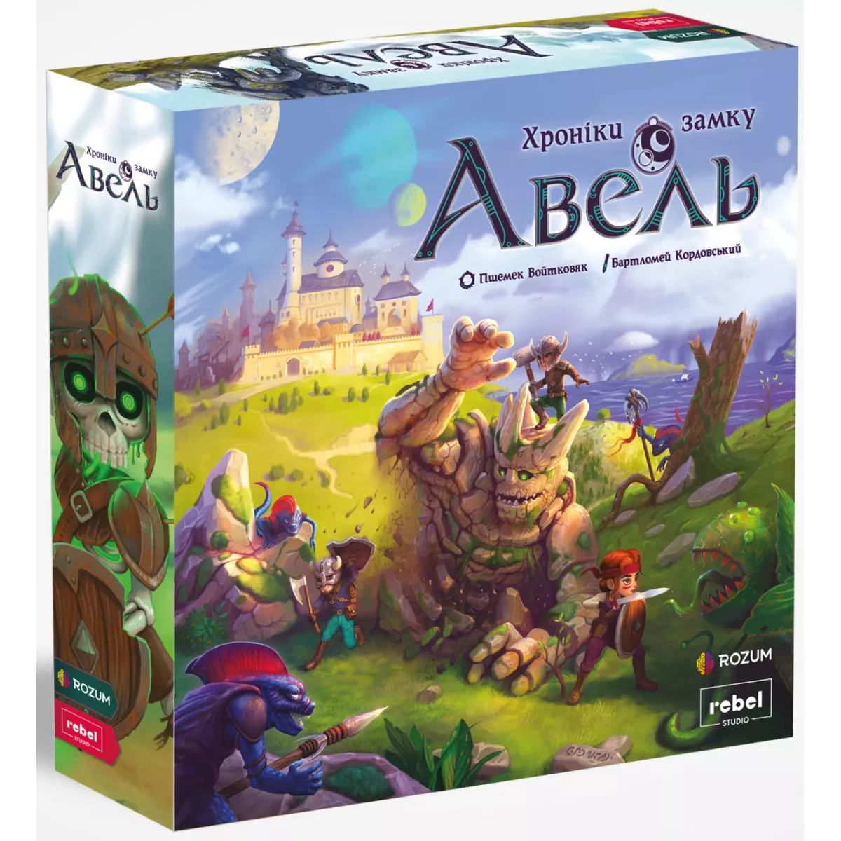 Чорний місяць з’явився на небі, а значить монстри, які чекали у своїх печерах,  встають під прапорами жахливого Звіра, аби захопити замок Авель та кристал життя! Хроніки замку Авель (Chronicles of Avel) - це мальовнича сімейна кооперативна настілочка для компанії від 1 до 4 гравців, у якій і старі, і малі будуть досліджувати казковий всесвіт і захищати людей від різноманітних чудовиськ. Час збиратися до бою! Спершу треба ретельно підготуватися: кожен гравець отримує власний двошаровий планшет, на якому позначена його витривалість, наплічник з речами (які ще треба буквально вмістити туди) та персонаж, якого можна розмалювати за власним бажанням, та навіть вигадати йому герб. Також необхідно викласти ігрове поле, яке складається з самого замку Авель, найближчих відкритих територій та незвіданих земель, до яких ще треба буде дістатися, аби отримати скарби та винагороди! Після цього час переходити до досліджень світу та боротьби з ворогами! У свій хід гравець може відкрити новий тайл з територією, переміститися, виконати дію тайлу, відпочити або вступити у бій. І якщо у переміщенні та дослідженні немає нічого складного, то бій - це дуже комплексна частина гри! Під час бою гравці кидатимуть різноманітні кольорові куби, залежно від їх спорядження, захисту та страхітливості монстра, з яким довелося вступити у сутичку. Тому варто завчасно заповнити по вінця власний клунок еліксирами, навіть якщо для цього іноді необхідно пожертвувати гарними цяцьками. Головне - не лякатися поразки у бою, адже втративши всю витривалість, вашого героя підлікують у самому замку. Остання битва! Щойно чорний місяць вступить у свою повну силу – Звір прокинеться і всі монстри королівства намагатимуться потрапити до замку. Якщо герої зможуть об’єднати зусилля та перемогти всю нечисть до того, як вони подолають стіни замку, то королівство буде врятовано! Тож якщо ви бажаєте поринути у не дуже складну, але цікаву пригоду, та навіть залучити до настілки новачків або гравців молодшого віку, мальовничі Хроніки замку Авель стануть ідеальним вибором для придбання! Коли ж вам більше до смаку не випадковий реіграбельний світ, а довга сюжетна подорож про хоробрих воїнів, наприклад, принців-мишенят, то зверніть увагу на кооперативну гру Mice and Mystics.