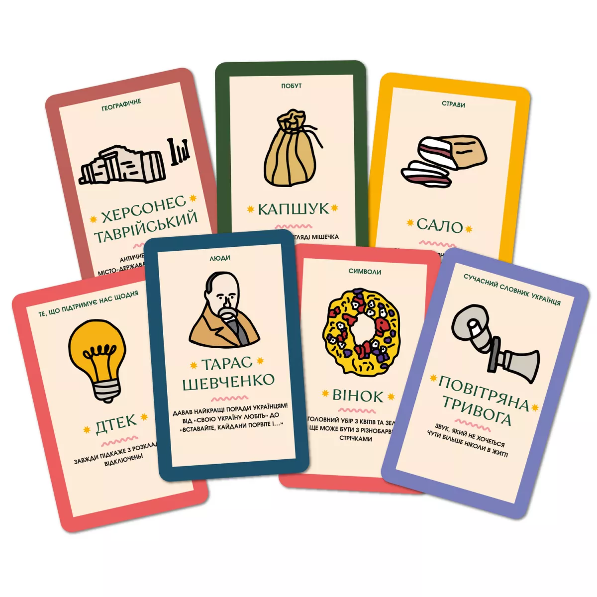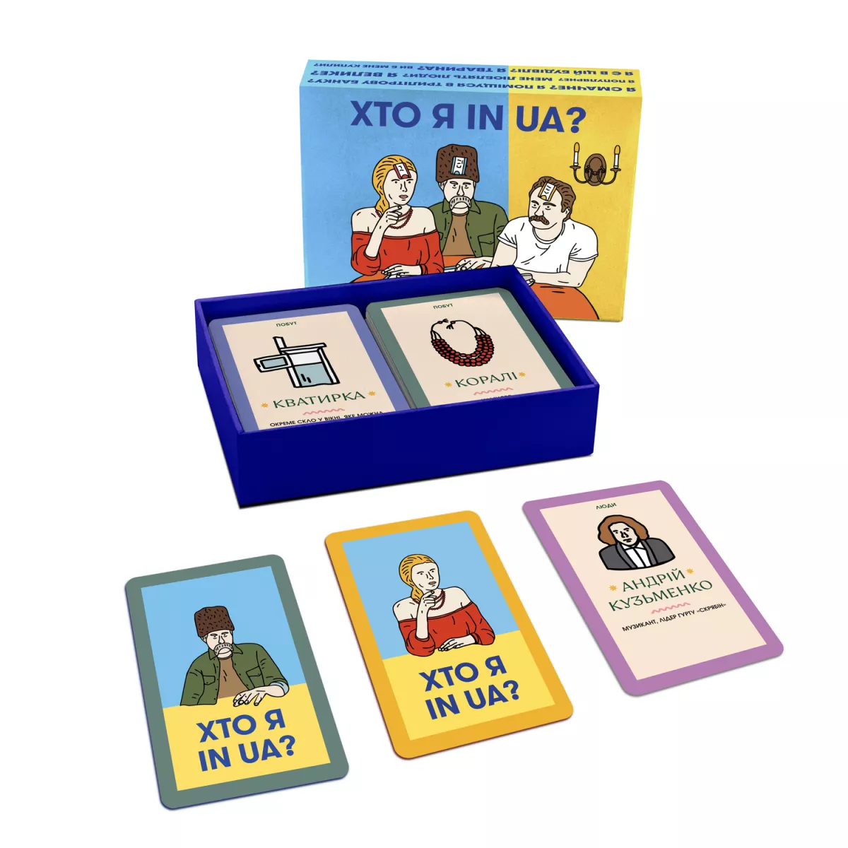 Хто я? Звичайна домогосподарка? Успішний адвокат? Студент-філософ з Могилянки? Агроном з Черкащини? Хто я? Гра Хто я in UA? - це культова розвага для тусовок та вечірок, про яку ви точно чули! Від двох до безлічі гравців повинні запастися гарним настроєм, з легкістю відкрити коробочку з грою й, не зволікаючи ні хвилини, почати грати! Ви не знаєте правила? Зараз все швиденько прояснимо! Отримуйте картку, приліпіть її собі на лоба (або розмістіть у будь-якому іншому місці, аби вам не було її видно, а інші гравці її добре бачили) та намагайтеся вгадати хто або що намальовано на вашій карті, ставлячи питання, на які можна відповісти виключно ТАК або НІ. Вгадали – отримуйте переможне очко! Не вгадали – ставте ще питання, аби прояснити собі всі деталі. І в чому ж особливість Хто я in UA? А суть саме цієї коробочки в тому, що всі 160 історичних персон, об’єктів, архітектурних споруд та понять стосуються нашої рідненької неньки України! Батьківщина-мати, Тарас Шевченко, козак-характерник та ще безліч культових ознак нашої держави згадані у цій настілочці. Подекуди, трапляються слівця, які хтось з гравців може не знати, адже вони пронизані місцевим колоритом, та на такі випадки на кожній карті міститься коротенький текст із поясненням цього поняття чи феномену. Сподіваємось, це очевидно, що вам ой як терміново необхідно замовити гру Хто я in UA?, зібрати веселу компанію та летіти грати у цю швидку патріотичну гру, аби випробувати власну логіку, здогадливість та знання української самобутності, історії та культури! Ну а для того, щоб перевірити свої знання в українській історії, літературі, географії та різних культурних аспектах, варто звернути увагу на настілочку Шевченко питає, у якій окрім карток із запитаннями, є ще й пишні вуса!