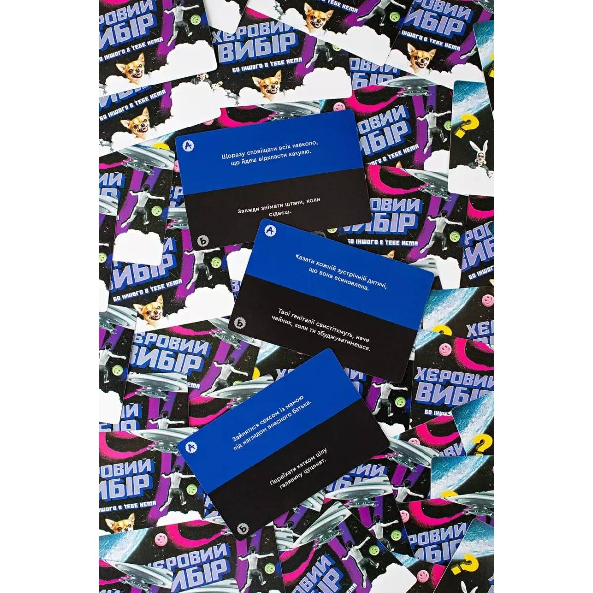 «Хєровий вибір» — розмовний патігейм для тих, хто не боїться поставити себе в незручне становище. В основі — дилемні питання, кожне з яких примушує вибирати між двома, м’яко кажучи, сумнівними варіантами. Але вибрати — лише половина випробування. Вам доведеться обґрунтувати свій вибір та, можливо, навіть спробувати переконати інших у своїй правоті.