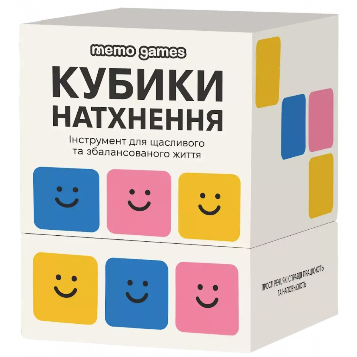 «Кубики натхнення» — набір, що допоможе створити особистий ритуал і навчитися краще чути власні потреби. Запропоновані дії прості, займають від двох хвилин до цілого вечора з собою. Занурення до них, без поспіху й очікувань, поступово повертають відчуття рівноваги та спокою. Якщо відчуваєте виснаження і шукаєте спосіб відпочити, спробуйте ввести гру у свою рутину.