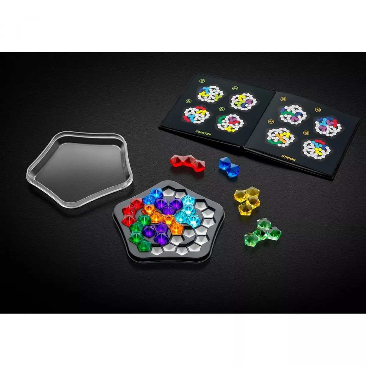 IQ Pentagon — це не просто гра, а справжній тренажер для мозку. Перед вами п'ятикутне ігрове поле та набір прозорих деталей пазла, які потрібно правильно розташувати, щоб виконати конкретне завдання. Особливість серії Делюкс полягає у високій якості виконання та особливій геометрії, що робить процес розв'язання задач ще більш захоплюючим.