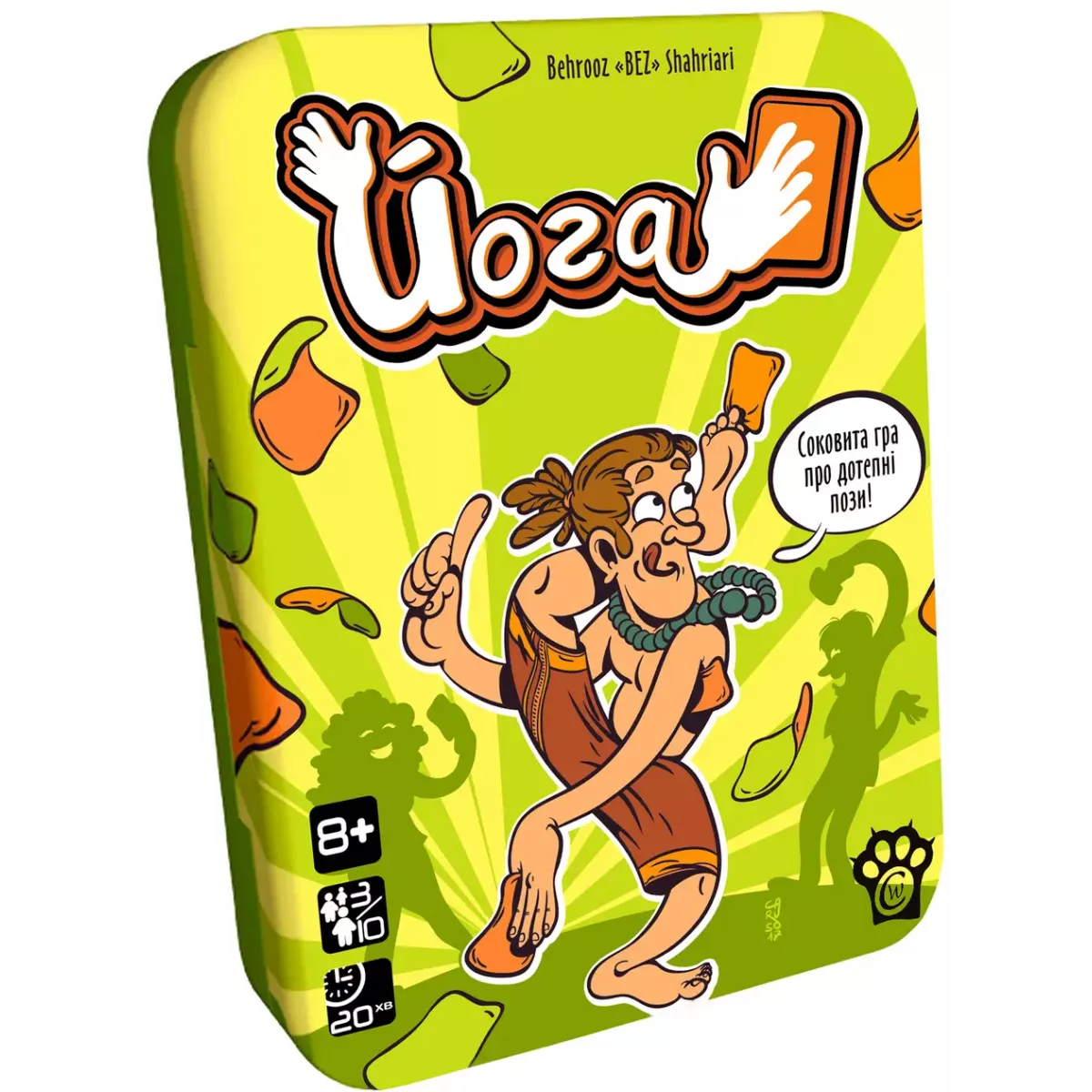 Настільна гра Йога (Yogi) – фантастична гра на спритність та кмітливість. У цій грі вам доведеться виконувати дії, що вказані на картках. Але головна «фішка» у тому, що ефекти карток залишаються діяти до кінця – і вам доведеться витримувати кумедну позу до самого кінця гри. Незручно тримати карту на плечі і притискати іншу підборіддям до тулубу? Не біда, потримай ще карту на голові, або пальцем іншої руки. Не вийшло? Ну що ж, пощастить наступного раунду – завжди можна поспостерігати за кульбітами інших. Йога – справжній скарб для поціновувачів простих, але веселих ігор на великі та не дуже компанії – чудово грається як на трьох гравців, так і на велику компанію від 6 людей (на великі компанії рекомендовано об’єднатись у команди та делегувати окремі картки). Прості, навіть елементарні, правила, відсутність складної термінології, візуальні підказки до дії на самих картках, веселе оформлення, компактний формат, який зручно брати в дорогу – все це робить настільну гру Йога надзвичайно ефективною інвестицією у розваги.