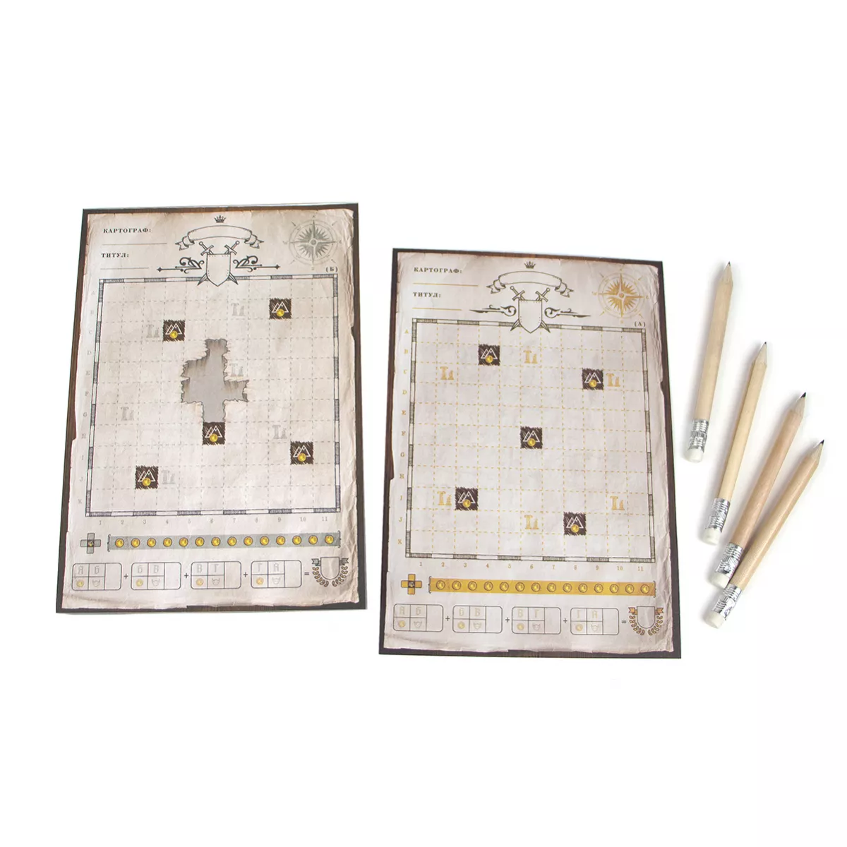 Картографи - сімейна настільна гра, в якій можна відправитися назустріч пригодам хоч поодинці, хоч величезною компанією! Цілий рік (умовний, звичайно ж) гравцям належить подорожувати по королівським землям, старанно замальовувати вивчені околиці в картографічні планшети, отримувати за свої старання золоті монети зі скарбниці, а також почесні зірки, в колекціонуванні яких і полягає головне завдання. Перед початком гри кожен учасник отримує в своє розпорядження головний атрибут картографа - планшет, а також олівець, щоб красиво оформити цей документ своїм ім'ям, титулом, а також, за бажанням, фамільним гербом. Ігрові карти розкладаються в центр столу різними стопками і колодами, відповідно правилам. Отримавши добрі побажання від рідних і близьких, наші герої висуваються в дорогу. Ігровий рік, як і рік справжнісінький, складається з чотирьох сезонів - пір року, і починається він з весни. У кожному сезоні гравців чекають кілька раундів, а ті, в свою чергу, діляться на три фази. У першій фазі дослідження відкривається верхня карта однойменної колоди, після чого в другій фазі картографії гравці повинні зобразити на своєму планшеті обрану фігуру, зазначену на відкритій карті дослідження, дотримуючись при цьому певних правил і обмежень. За деякі фігури гравці отримують золоті монети, деякі ж фігури намалювати не вийде, якщо не дотримані всі вказівки. У цьому випадку на карті володінь малюється одна клітина, яка заповнюється будь-яким типом місцевості, крім гір. У колоді дослідження може попастися карта аномалії. В цьому випадку всі малюють у себе одну лише клітку з типом місцевості. Якщо відкривається карта руїн, то за нею відразу ж відкривається наступна карта, а гравці згодом повинні будуть намалювати ту чи іншу фігуру, перекриваючи у себе на планшеті одну з кліток руїн. І, нарешті, при відкритті карти засідки гравці міняються планшетами і зображують на чужих володіннях фігури з монстрами. У третій фазі, після підрахунку показників часу на відкритих картах дослідження, завершується або триває поточний сезон. В кінці кожного сезону гравці підраховують переможні очки за виконані королівські укази. Перед початком наступного сезону відкриті карти досліджень перемішуються і повертаються в колоду, і при цьому до них додається ще одна карта засідки, незалежно від того, випала вона в минулому сезоні чи ні.