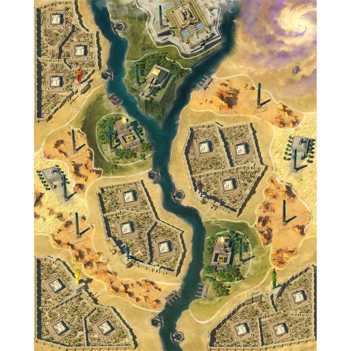 Єгипетські міжусобиці кояться на мальовничому пустельному полі. Поле двостороннє. Залежно від числа учасників використовуються різні конфігурації поля. Гравці вибирають богів, яких вони представлятимуть - Анубіса, Гора, Бастет, Ваджет або Собека, беруть планшети й компоненти відповідних кольорів. У районах вибраних міст вони розміщують перші рівні пірамід (не більше 2 рівнів в одному районі) і війська (по 5 воїнів у двох районах).