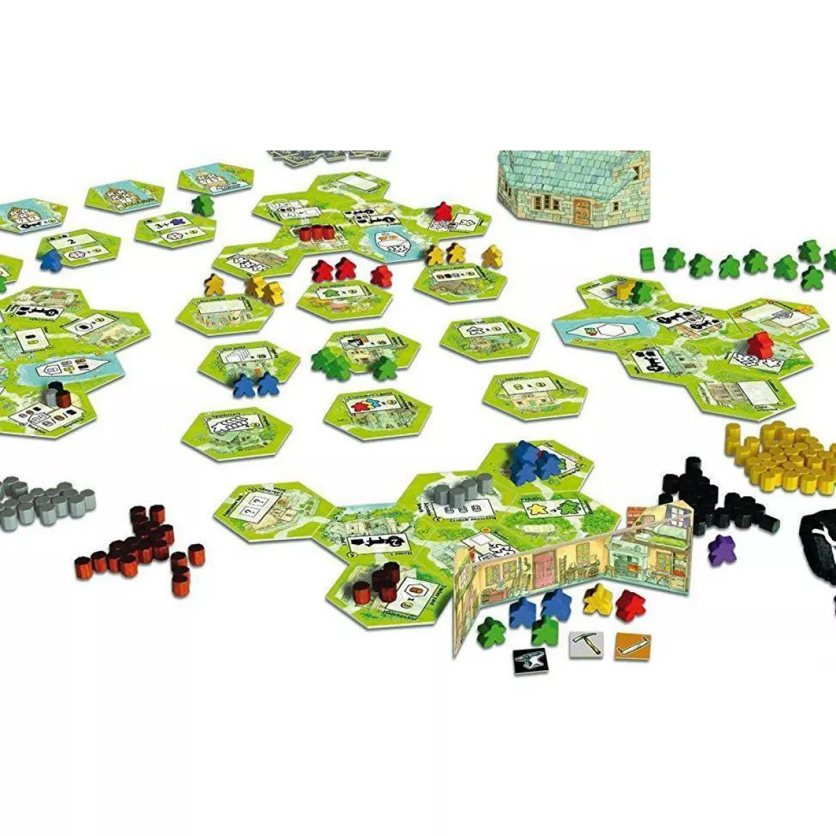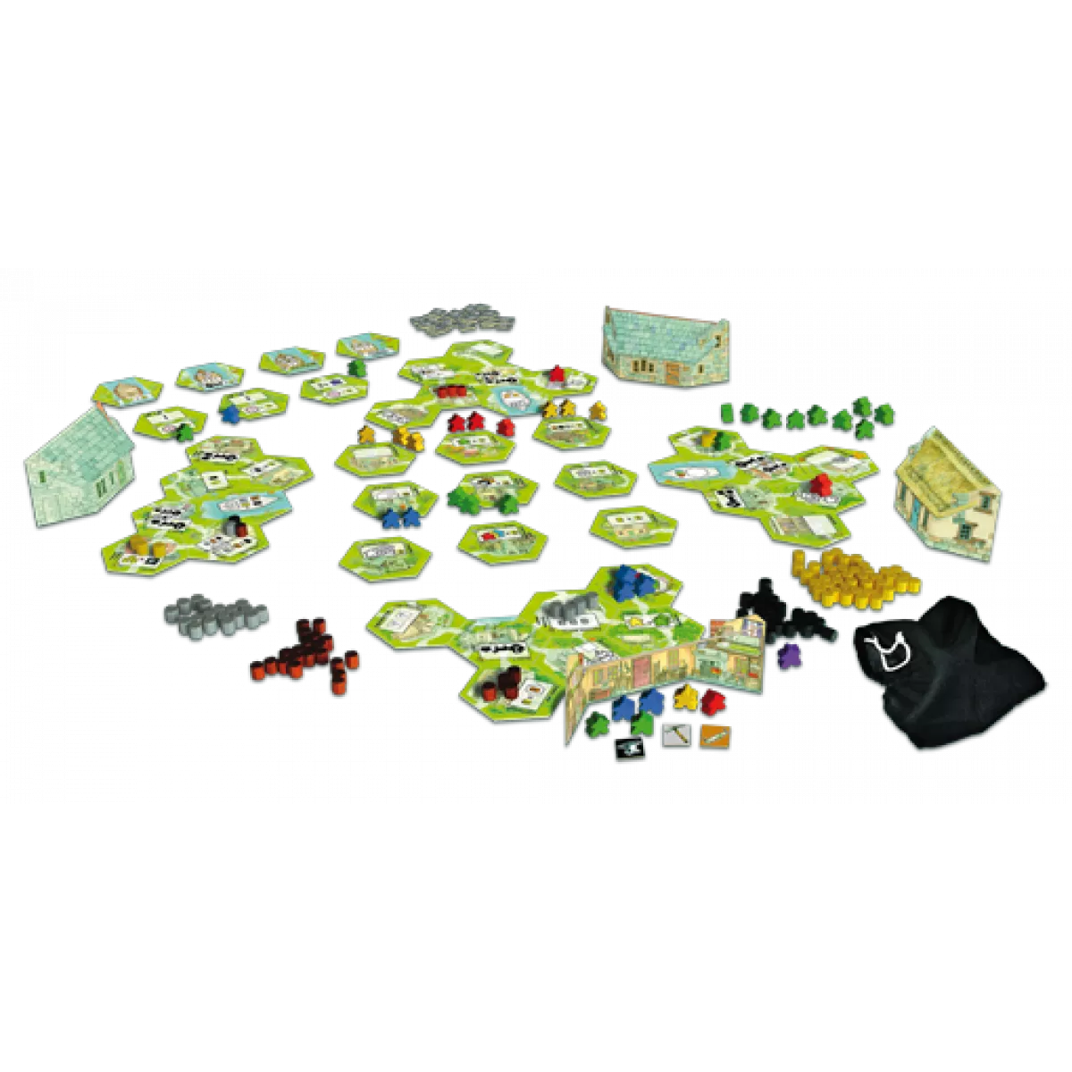 У коробці 64 великі шестикутні плитки;, 48 жетонів умінь;, 120 дерев’яних фішок ресурсів;, 140 дерев’яних робітників;, 1 фіолетовий робітник першого гравця;, 6 ширм-будинків;, 1 тканинний мішечок;, 12 зіп-пакетів для зберігання компонентів;, 1 книга правил