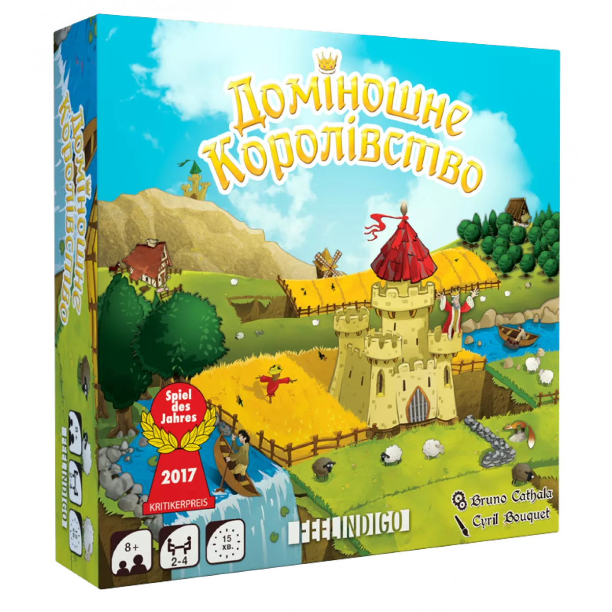 Чудовий сімейний абстракт від неперевершеного Бруно Катали, автора таких ігор, як «П'ять племен», «Кіклади», «Хістріо», «Гра престолів: Десниця короля» та «Раптор». Настільна гра «Kingdomino» вийшла в світ в 2016 році.