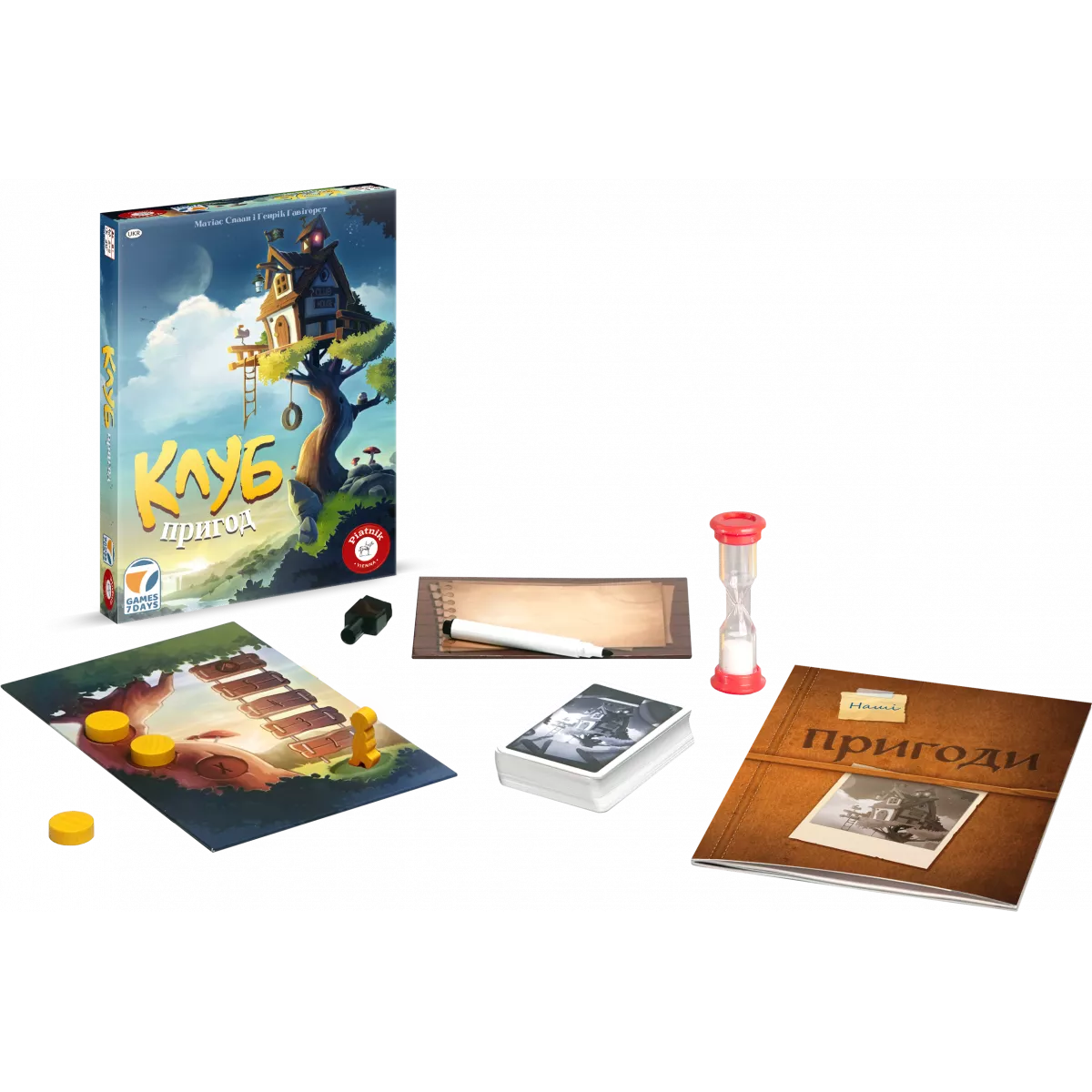 У настільній грі «Клуб пригод» ви будете потрапляти в різні несподівані ситуації та переживати захопливі історії лише з обмеженим набором предметів. Використовуйте свою винахідливість й логіку та долайте завдання разом.