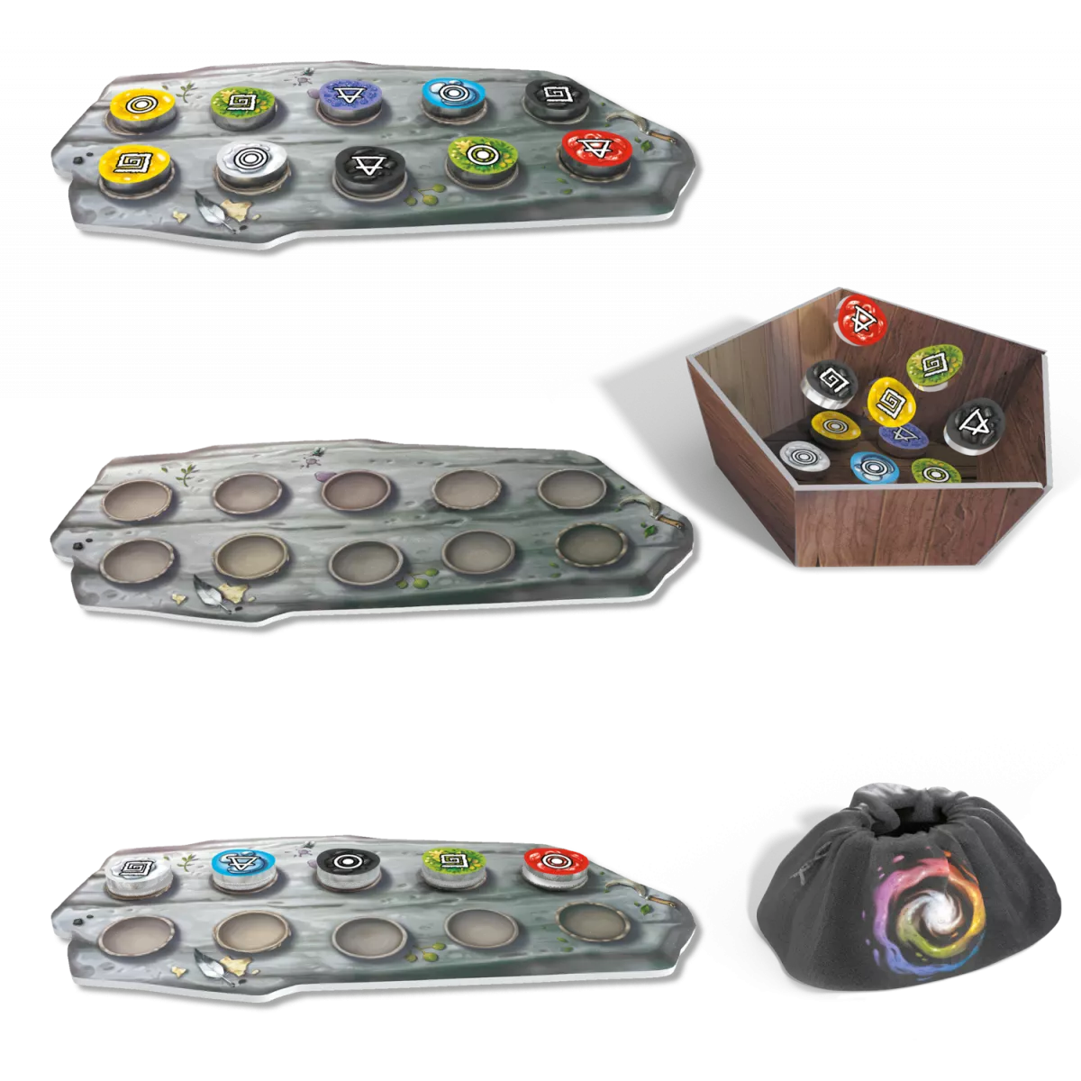 У коробці 84 карти заклинань, 105 жетонів матерії, 1 плитка вівтаря, 4 планшети фамільярів, 4 карти-пам’ятки, 1 мішечок вихору, 1 жетон першого гравця, 1 коробка скиду, 1 книжка правил