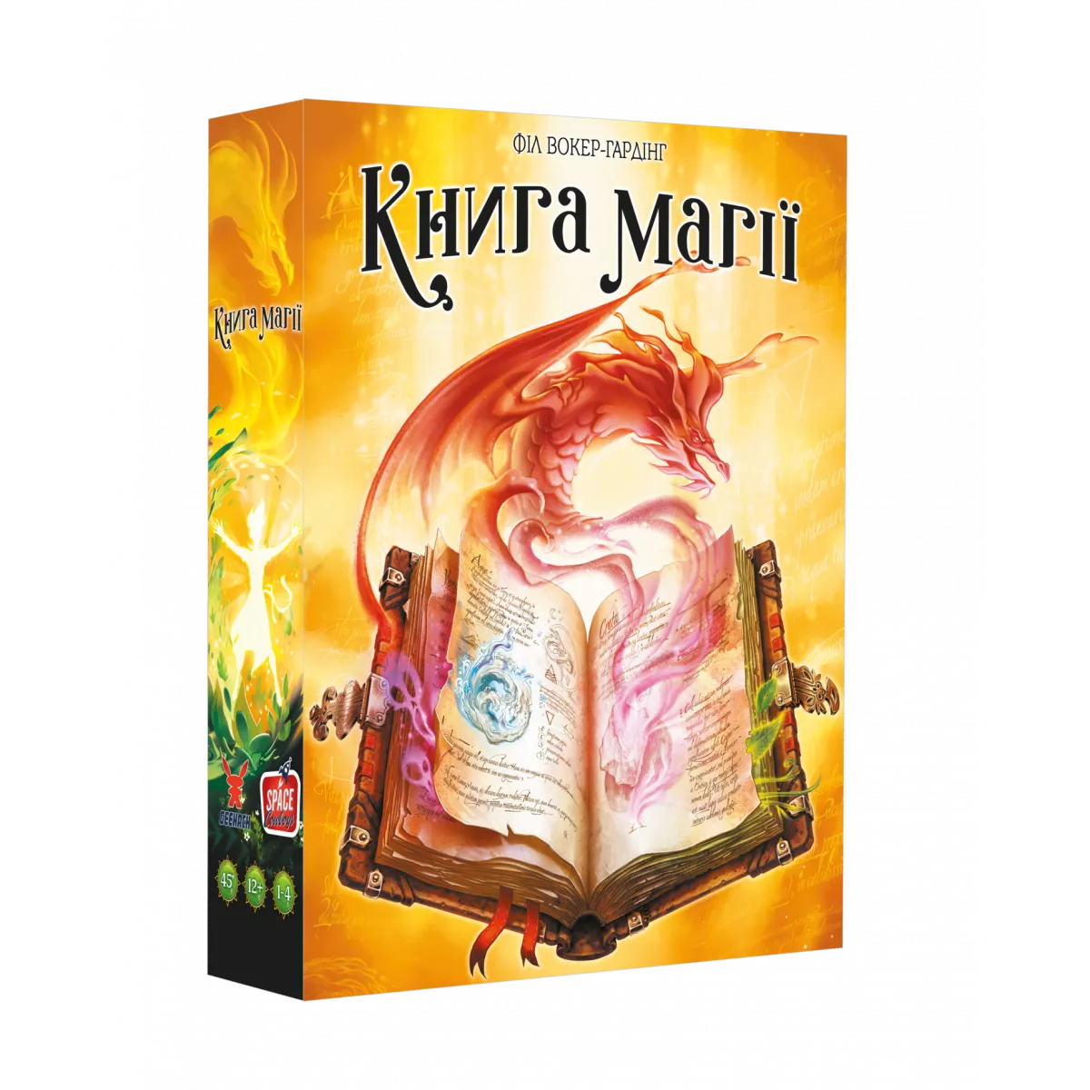 На щорічні змагання з чаклунських та відьомських здібностей зібралися чарівники у усіх куточків світу і кожен з них бажає показати свою майстерність та похизуватися власними чудернацькими фамільярами, намагаючись заслужити звання найкращого чаклуна! Тому у настілочку Книга Магії (SpellBook) від 1 до 4 фанатів містичного та незбагненного уважно схиляться над вихором, який буде видавати дивовижну матерію, так необхідну для вивчення нових заклять. Магії потрібно  трошки часу, аби вона розкрилася на повну На самому початку гри у вас буде не багато можливостей: аналізуйте, яка матерія вам потрібна, збирайте її, віддавайте фамільяру та вчіть закляття. Але чим далі в ліс — тим запашніше мухомори! І з кожним новим вивченим закляттям ви отримуватимете нові здібності та можливості! Ба більше, хоч заклять у гравців всього 7 на партію, проте кожне з них має кілька рівнів покращення, а для нових ігор їх ще й можна перетасувати, збільшивши кількість можливих комбінацій до тисяч! І лише вам обирати, якою стратегією ви сьогодні хочете перемогти: вивчити багато маленьких магічних слів, чи назбирати Матерії та одразу показати всім справжнє могутнє чаклунство! Не перевантажуйте чарівні палички, вони легкозаймисті! Завершиться змагання у той момент, коли хоча б один з гравців заповнить планшет власного фамільяра по вінця, або у його книзі заклять не залишиться вільних сторінок. Тепер можна підрахувати переможні очки та вручити найсильнішому чаклуну цього року пухнастого чорного кота, мітлу з вертикальним зльотом та новий блискучий казан. Останній штрих для проведення змагання — замовити коробочку з грою Книга Магії. Та коли ж складні піруети руками та довгі слова невідомими мовами здаються вам не дуже поважним ремеслом, то розпалюйте вогнище та готуйтеся варити найрізноманітніші зілля у мальовничій грі Відьомська Круговерть.