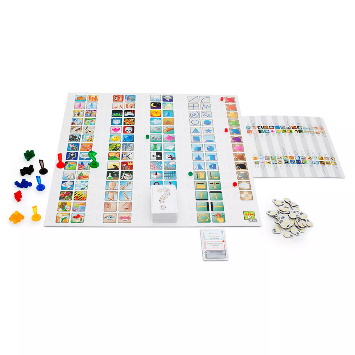 У коробці Ігрове поле з універсальними іконками;, Набори спеціальних ігрових маркерів;, 110 карт концептів, на кожній з яких по 9 слів (або фраз) трьох рівнів складності;, Жетони подвійних і одиночних переможних очок;, Дві пам'ятки гравця (якщо важко запам'ятати);, Ємність для зберігання компонентів;, Правила гри.
