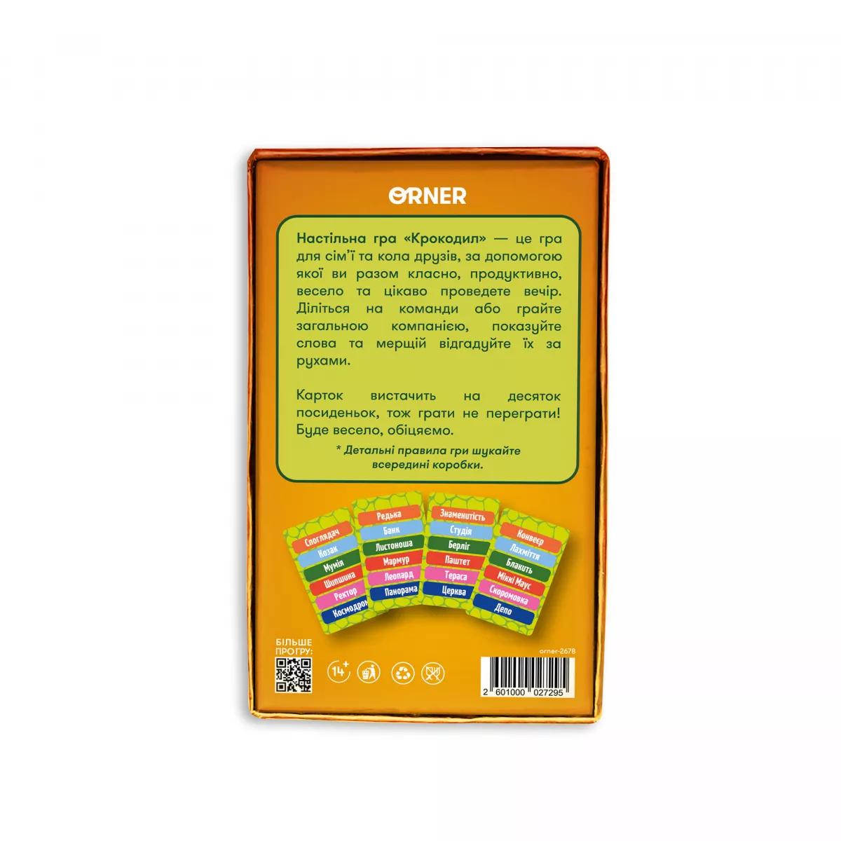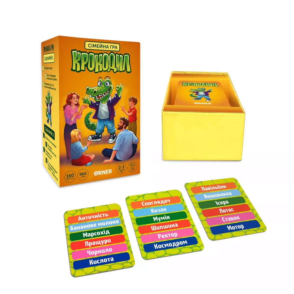 «Крокодил» — творча гра на асоціації для всієї родини. Учасники змагаються, пояснюючи слова жестами. Гра дарує можливість розкрити свої таланти, розвинути навички імпровізації, акторської майстерності та вміння слухати.