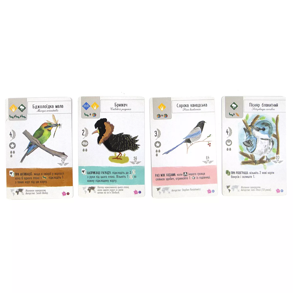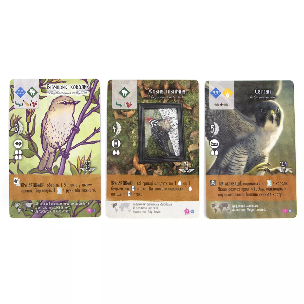 Інші елементи карт, іконографіка та тексти залишились такими ж. Це дає можливість частково замінити оригінальні карти на ті, які подобаються саме вам! Також можна грати лише з доповненням «Крила. Фан Арт Пак», використовуючи планшети від базової гри або гри «Крила. Птахи Азії».