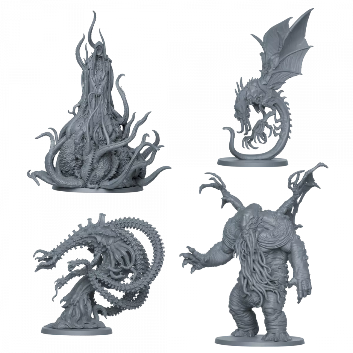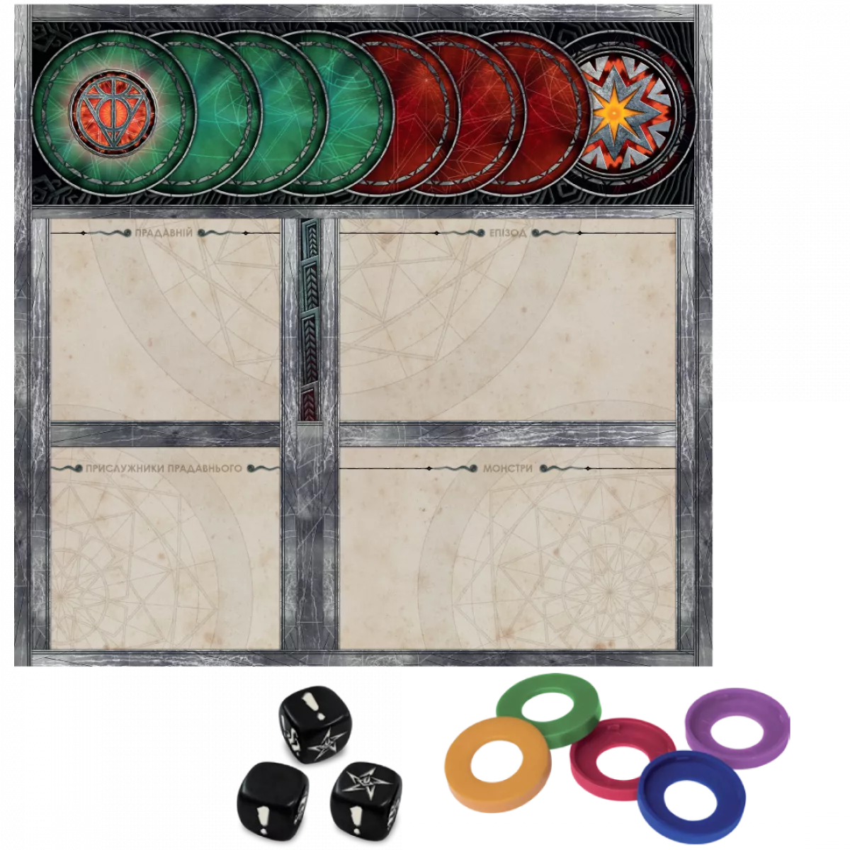 У коробці Стародавнього будуть фігурка самого жахливого божества, мініатюри його союзників, жетони, карти поплічників, рівнів і Мітів. У коробочці набору епізоду ви знайдете схему ігрового поля, опис ритуалу і здібностей монстрів. За рахунок різних поєднань Древніх і епізодів забезпечується дуже хороша реіграбельность. Але ж будуть ще і доповнення!