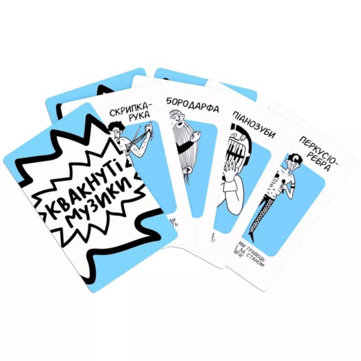 Проста карткова гра про дивакуватих музикантів. У невеличкому містечку оголосили міжнародний музичний конкурс. Одного з гуртів-учасників визначили народним голосуванням. Іншим конкурсантом стане гурт, що набере кількість балів, максимально наближену до балів гурту-переможця народного голосування. Як грати Гравець може виконати одну з трьох можливих дій: 1) викласти карту в загальний набір і виконати властивості карти; 2) взяти карту з основної колоди; 3) взяти карту із загального набору в руку. Щойно гравець додав четверту карту до загального набору і виконав властивості карти – раунд закінчується. Після того гравці рахують суму чисел на картах у себе на руці й порівнюють її з сумою чисел на картах із загального набору. Раунд виграє гравець, чия сума чисел карт його набору дорівнює або максимально наближена до суми загального набору, але не більша. Гра завершується після четвертого раунду й визначається переможець. Перемагає гравець, що переміг у більшості раундів.