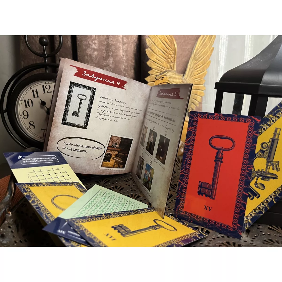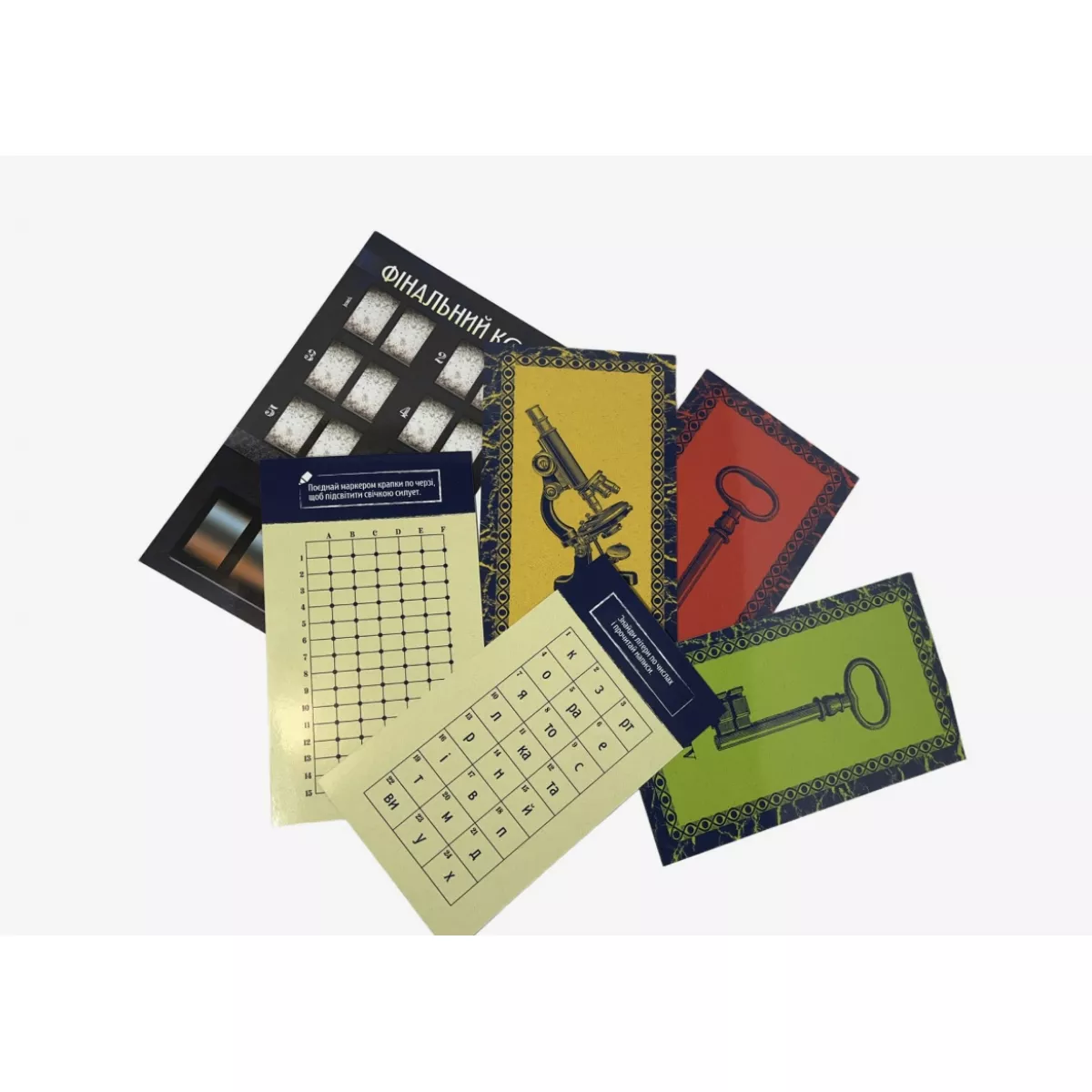 В комплекті не лише схема маєтку, а і надзвичайно важливий щоденник дружини власника Лаури, спеціальні картки та маркер, що стирається. Карти з підказками за потреби допоможуть вашій команді ВИЖИТИ.
