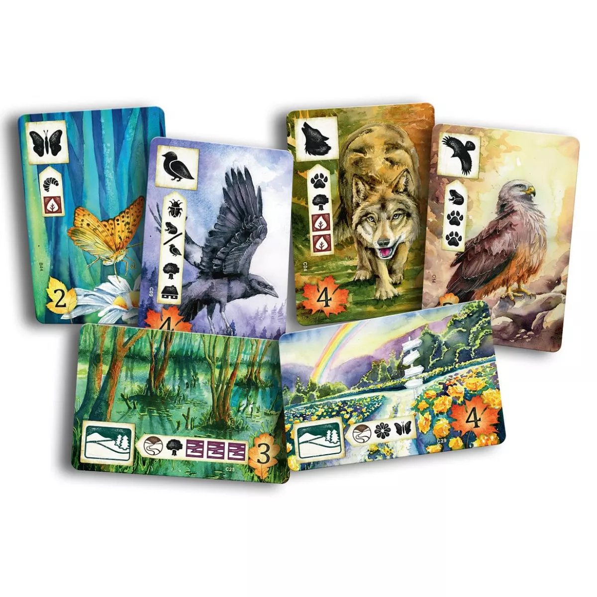 Краєвиди природи захоплюють подих! От серед травички повзе жучок, у гілках великої яблуні заховалася пташка, а степом біжить зграя молодих кабанчиків. І навіть якщо серед гучного міста таку картину виходить побачити не щодня, у красивій сімейній грі Левада ви можете створити ще й не такі види! Левада (Meadow) - це єврогейм, призначений як для гри соло, так і для гри у компанії до 4 людей. Ви будете спостерігати за природою, вишукувати тварин, птахів та краєвиди серед лісів та полів. Час починати подорож! Кожний гравець отримує одну дорогу, на яку будуть викладатися карти краєвидів, та одну початкову карту місцевості, яка стане початком природнього біому. Далі по черзі ви маєте змогу обрати одну з 16 карт, розташованих на спеціальному полі, проте не вийде просто забрати собі будь-яку, адже для цього потрібно використовувати спеціальні жетони стежок і виставляти їх на поле. Аби викласти одну з карт треба виконати умови, вказані на ній. І ці умови дуже зрозумілі, з точки зору логіки! Адже дерева можна розмістити тільки, якщо у вас є місцевість з травою, пташку можна викласти або поверх дерева, щоб вона звила там гніздо, або на горобину, щоб їла стиглі ягідки, а ведмідь буде жити біля лісу та водойми, аби ласувати рибою. Взагалі малюнки на картах потрібні тільки, щоб підтвердити логіку (і щоб отримувати переможні очки). Найкращий дослідник Як визначити переможця у грі? Якщо в широкому сенсі, то переможе той, хто за свою подорож побачив якомога більше найнезвичайніших місцин, тварин та птахів. Вочевидь, білочку можна часто-густо зустріти і у парку, а от величний олень – це вже серйозно! То і пишатися таким знайомством можна більше! Та якщо спростити цю розповідь, то переможцем стане гравець, який отримає найбільше переможних очок. І чим більше вимог потрібно карті для розіграшу, тим, зазвичай, вона буде ціннішою. Це картинна галерея! Не можна пройти повз художнє оформлення Левади, адже кожна з унікальних карт у цій грі - це неймовірна мальовнича картина дикої природи! Якби вони були трішки більші, їх би і в рамку поставити було не соромно! Тому якщо вам до душі спокійна та медитативна, неймовірно мальовнича гра Левада, то немає жодної причини для зволікання, хутчіш замовляйте коробочку з цією настілочкою у власну колекцію і кличте друзів або родичів на кілька партій у Леваду! І аби ще більше поєднатися з природою, варто звернути увагу на одну з найкращих абстрактних ігор про створення власної екосистеми – Каскадію.