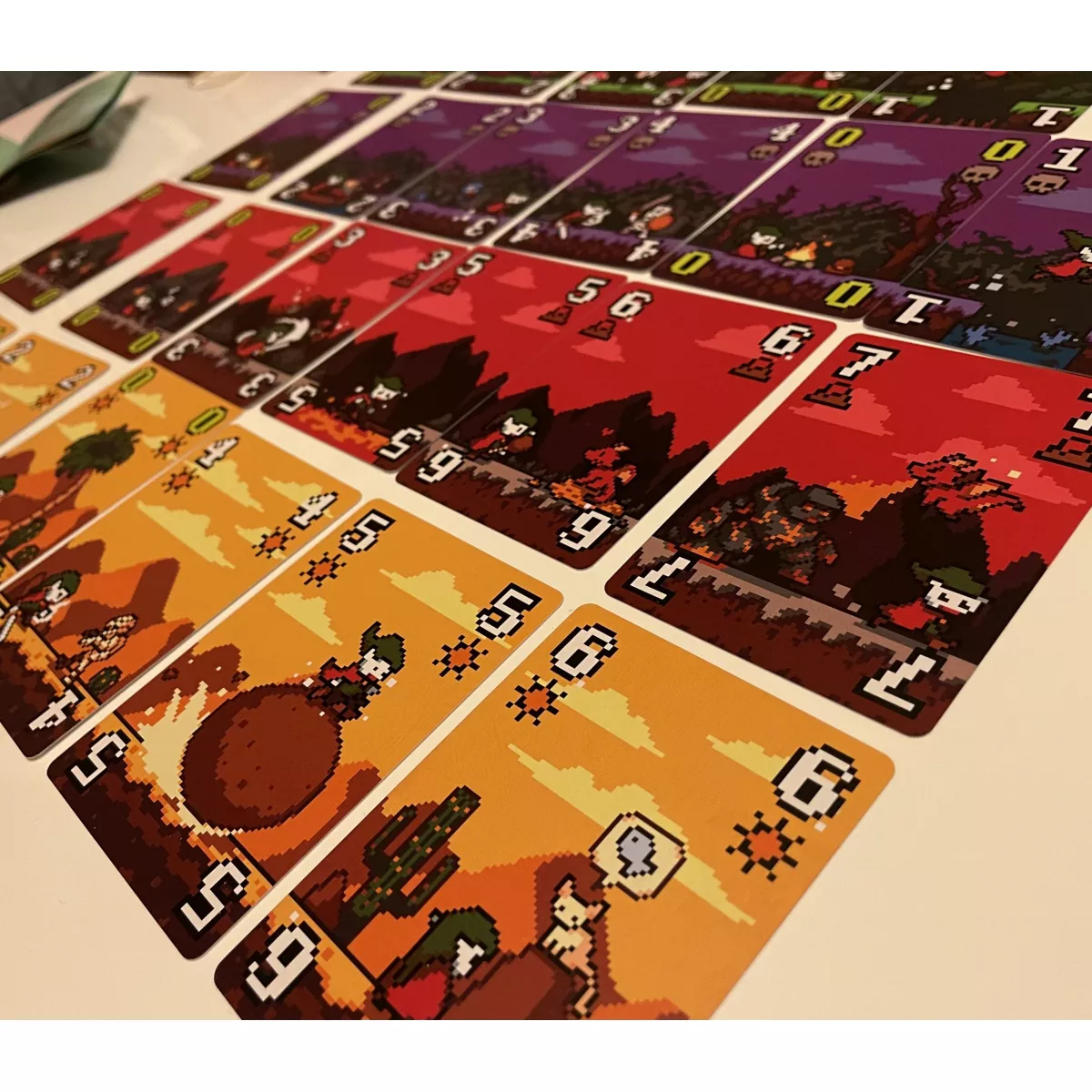 У коробці 40 карт рівнів, 10 карт перезапуску 3 карти павз, правила