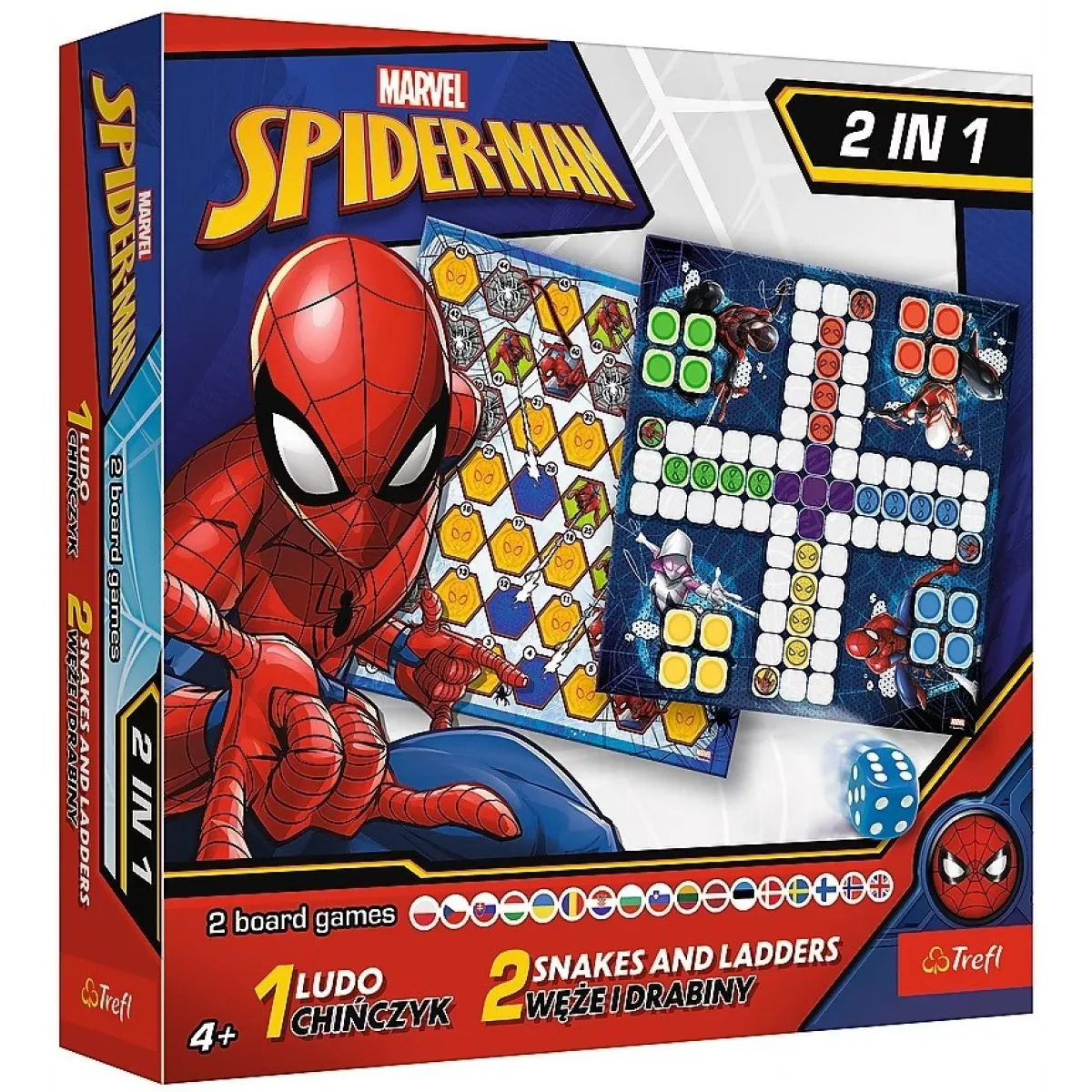 Опис Настільна гра Лудо + Змії і Драбини 2 в 1: Людина-Павук Marvel