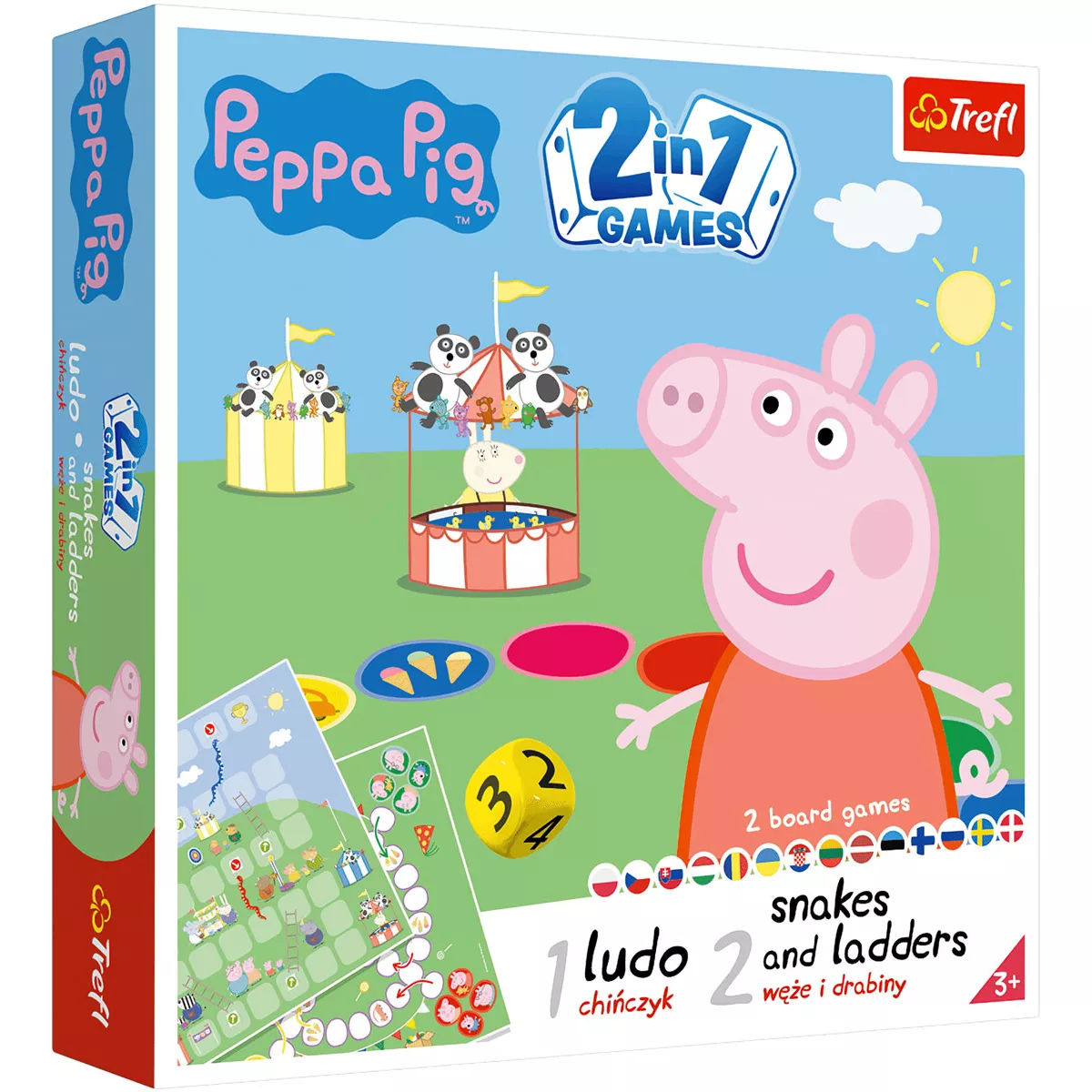 Перед вами ігровий комплект з двох класичних настільних ігор для всієї сім'ї, який дає змогу навіть найменшим гравцям позмагатися в удачі, щоб прийти першим до фінішу. А улюблені герої популярного мультфільму "Свинка Пепа" додадуть атмосфери та позитивних емоцій під час дружнього змагання.