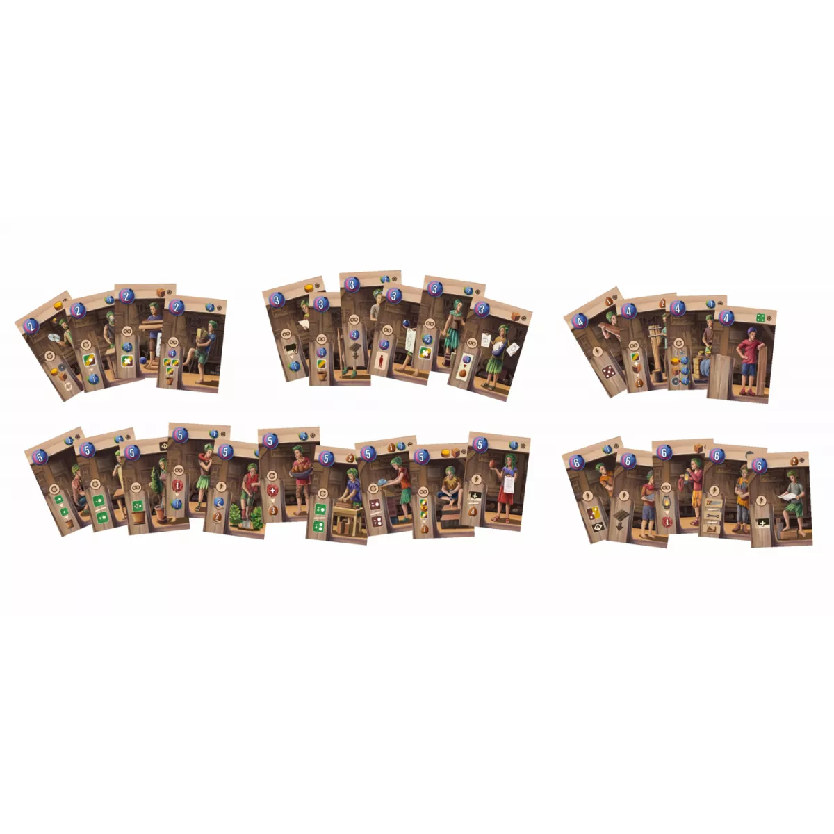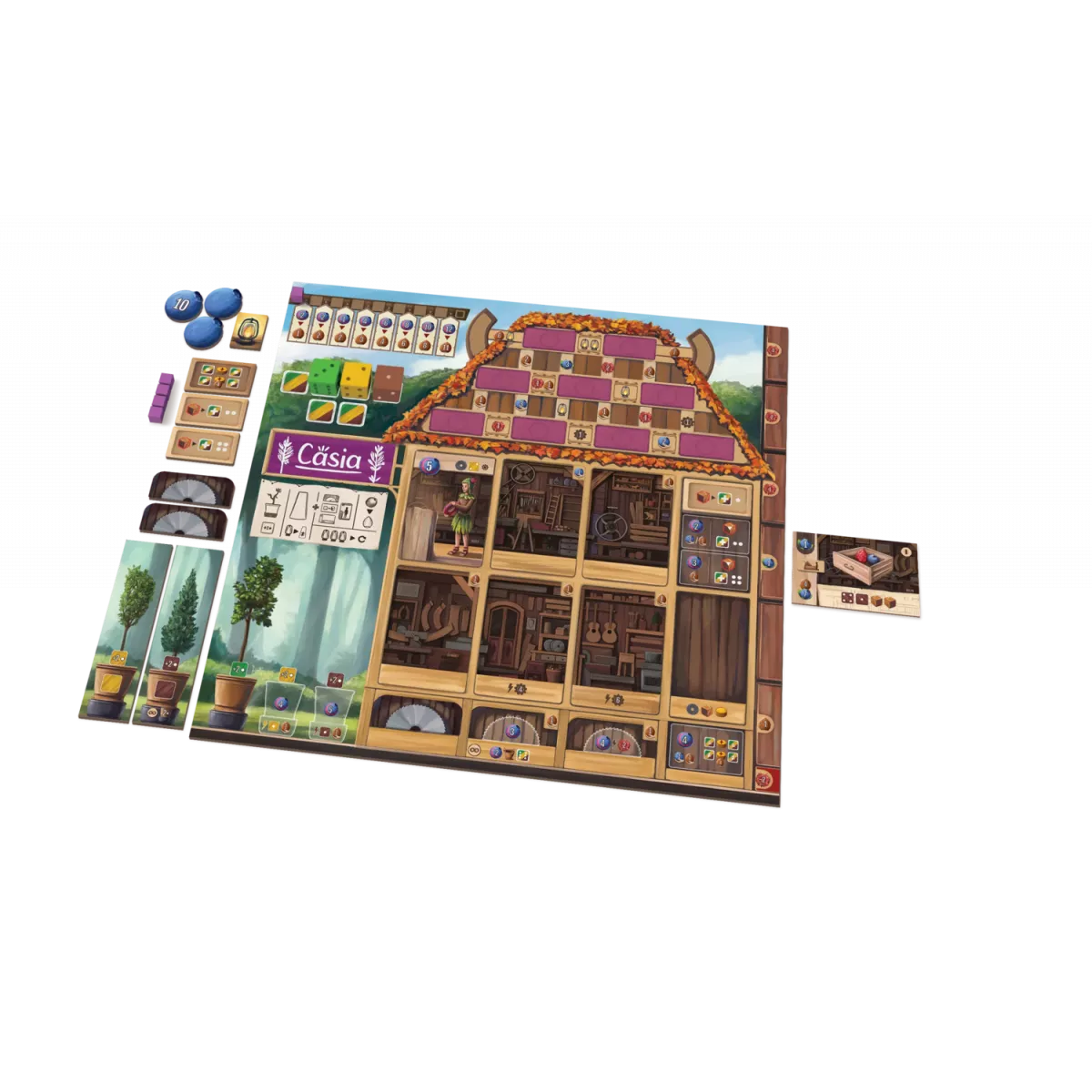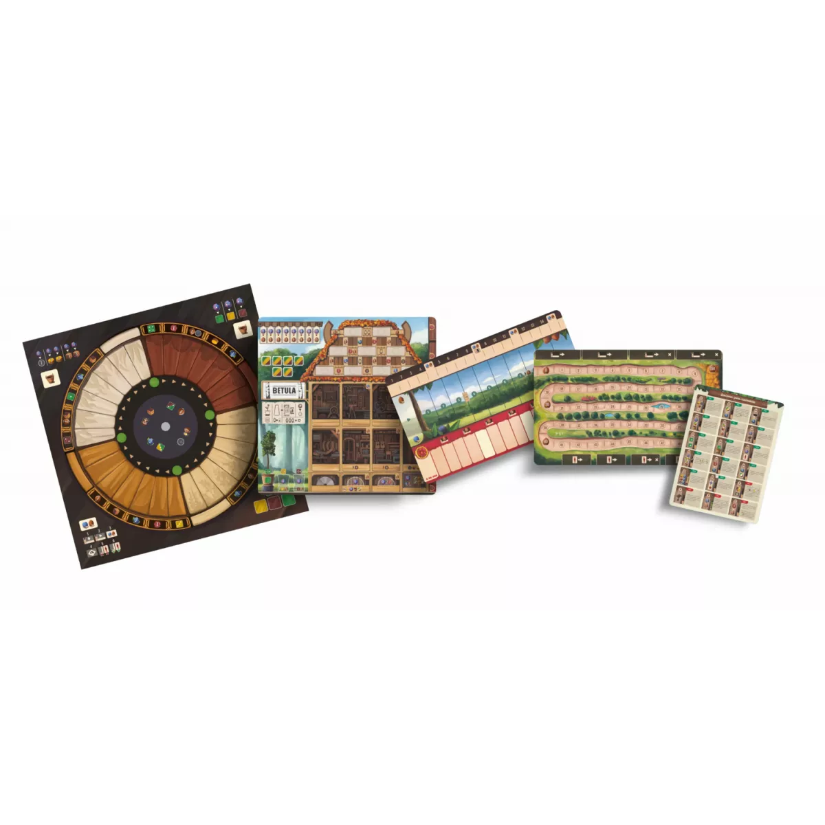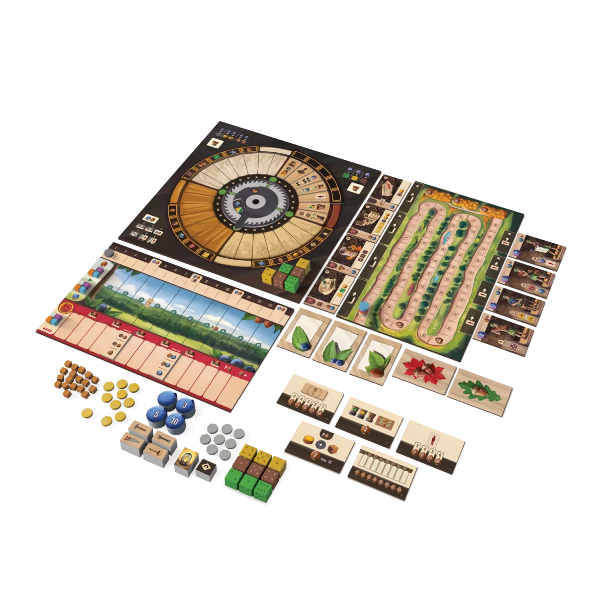 У коробці 1 Дошка з колесом дії, 4 дошки гравців, 1 Дошка доходів, 1 ігрове поле, 12 тайлів пилки, 8 тайлів вазонів, 12 тайлів зрощування, 3 тайли репутації, 1 Довідка про допоміжні ефекти, 7 Тайлів дій, 9 Жетонів повторного використання тайлів, 55 жетонів інструментів, 1 стартова карта гравця, 16 жетонів ліхтарів, 1 тайл дуги, 32 дерев'яні жетони, 20 жетонів дерев'яних ломів, 16 дерев'яних жетонів пилки, 1 дерев'яний круглий жетон, 16 пластикових жетонів клею, 4 дерев'яні лічильники очок, 42 жетони чорниці, 14 дерев'яних зелених кубиків, 14 дерев'яних жовтих кубиків, 14 дерев'яних коричневих кубиків, 10 карт соло, 27 карт помічників на початку гри, 22 Картки помічників пізньої гри, 32 Картки наказів на початку гри, 32 картки замовлень наприкінці гри, 8 карток наказів з фундука, 8 карток державного контракту, 1 Книга правил