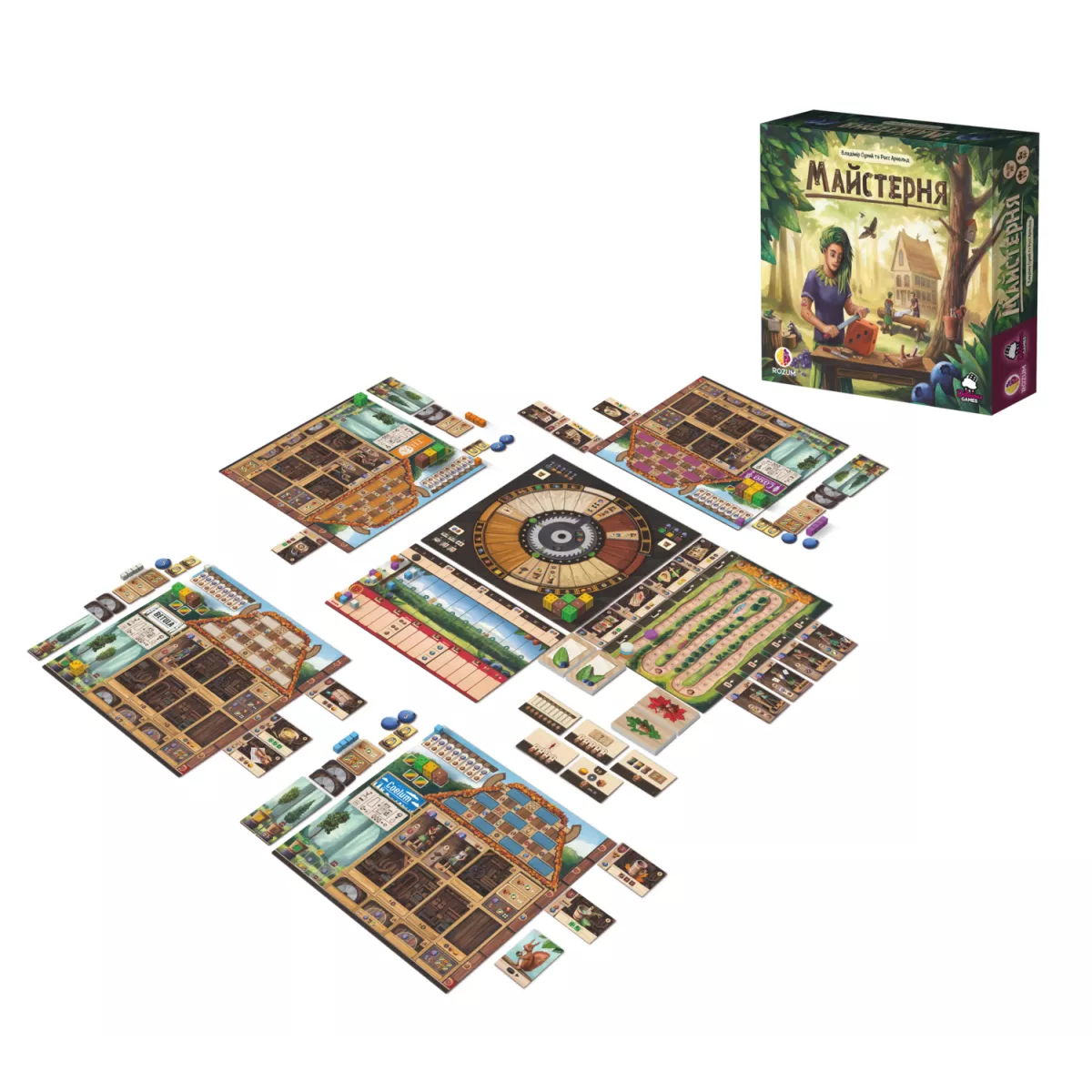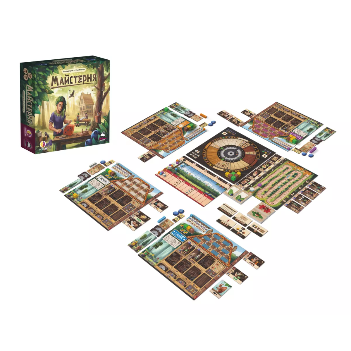 Щодня доводиться рано вставати, йти на роботу або на навчання, горбитись за комп’ютером, або натирати мозолі на вухах телефонною слухавкою… Як же це втомлює! От би зараз махнути у ліс, жити в дерев’яному будиночку, дивитися на пташок та майструвати поробки на замовлення! Який відпочинок для душі! І ми знаємо, що може допомогти з цим - гра Майстерня. Звичайно, квитки на потяг до весняного лісу у комплект не входять, проте аналогічну атмосферу затишку і відпочинку партія точно забезпечить! Майстерня (Woodcraft) - це євростратегія, у якій впродовж кількох годин з друзями або сім’єю ви забудете про всі турботи реального світу, адже матимете змогу займатися майструванням іграшок, меблів і затишних дрібничок для дому. Сам ігровий процес є досить комплексним, адже у вашій майстерні потрібно займатися не лише безпосередньо виготовленням поробок, а до того ще й привезти матеріали – клей, деревину (можна, звичайно, виростити самостійно, але якщо деревина у садочку все ж росте, то клей не пускає пагінці, скільки його не поливай), взяти замовлення, налаштувати приладдя та заточити пилки з сокирами. Не забудьте, що гуртом й справа рухається краще, тому у майстерню можна запросити спеціалістів, які будуть вам повсякчас допомагати. За дії відповідає спеціальне колесо, яке і візуально, і механічно є досить оригінальним. Адже, чим довше певну дію гравці не використовують, тим більший бонус за неї в результаті отримають. І з древиною є цікавинка: за розмір бруску відповідають кубики. І чим довше дерево росте  у вас на подвір’ї, тим більшому значенню кубика воно відповідатиме. Але ж бувають випадки, коли сусіди попросили вас виточити ослінчик, ви ж не будете використовувати на це аж десятилітній дуб! Тож ваш величезний куб зі значенням 6 можна розпиляти на декілька меншечких, приміром, на 2 та 4. Та головне - не забувайте, що, якщо ви вже пообіцяли щось виготовити, то своє слово потрібно тримати! Чим більше часу пройде з моменту отримання замовлення, тим меншою буде за нього винагорода. І хоча правил та умов багатенько, та результат один: хто виявиться кращим майстром та наприкінці 14 раундів назбирає найбільше переможних очок за замовлення, той і стане найкращим майстром, слава про якого рознесеться по усіх околицях! Тож не зволікайте, придбайте гру Майстерня, аби навіть серед метушні кам’яних джунглів віднайти для себе затишок та спокій маленької столярної майстерні у весняному лісі! Якщо ж майстерні для морального відпочинку вам забагато, маєте незабутню можливість поринути просто у дивовижний світ дикої природи разом з грою Каскадія.
