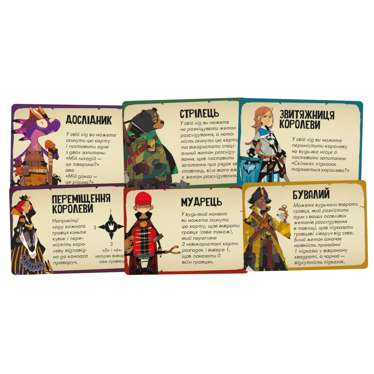 Валія, звитяжниця королеви. Один раз за гру Валія може використати своє вміння, щоб перемістити жетон королеви на будь-яке місце й поставити особливе запитання: «Скількох підказок на цю мить торкається королева?»