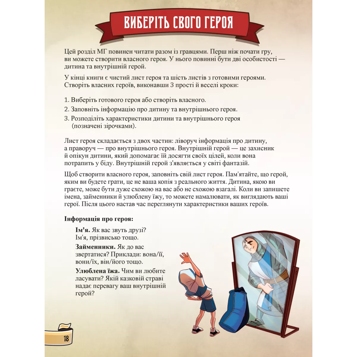 Несподівано відбувається щось дивовижне! Реальний світ перетворюється на світ фантазій, а діти перевтілюються у своїх внутрішніх героїв, щоб пройти випробування в світі фантазій – у вежі чарівника, у лігві дракона, у хатинці відьми, на лицарському турнірі тощо. У разі успіху вони отримають предмет: один з гравців може записати його на своєму листі героя, а потім використати для досягнення своєї цілі. Група також може отримати ще один предмет, кинувши кістки.