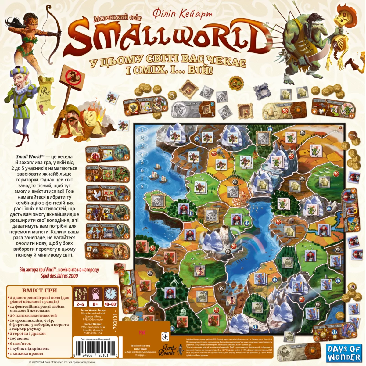 Легка стратегічна гра, квінтесенція механіки контролю територій. Настільна гра «Маленький світ» - головне дітище бельгійського гейм-дизайнера Філіпа Кейарта, що також створив похмурий «Small World: Підземний Світ» і «ЕВО. Вік динозаврів». Ось уже десять років Філіп не втомлюється радувати фанатів серії, придумуючи всілякі доповнення з новими расами і властивостями, сюжетними подіями, модульними полями і навіть оверлордом.