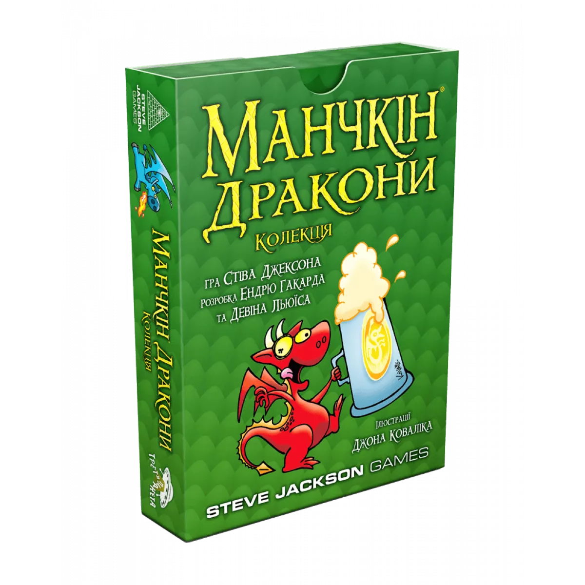 Розширюйте свою колекцію «Манчкіна» за допомогою «Настільної гри Манчкін Дракони. Колекція» та готуйтеся до незабутніх пригод, сповнених сміху, стратегічних рішень та епічних битв з найстрашнішими (і найкумеднішими) драконами, яких ви коли-небудь зустрічали!