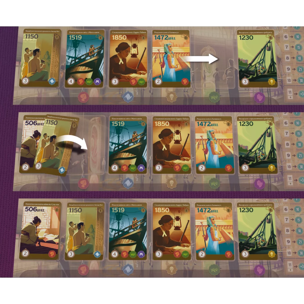 А головною «фішкою» гри є ілюстрації на картах, що зображають реальні історичні події та розповідають цікаві факти.