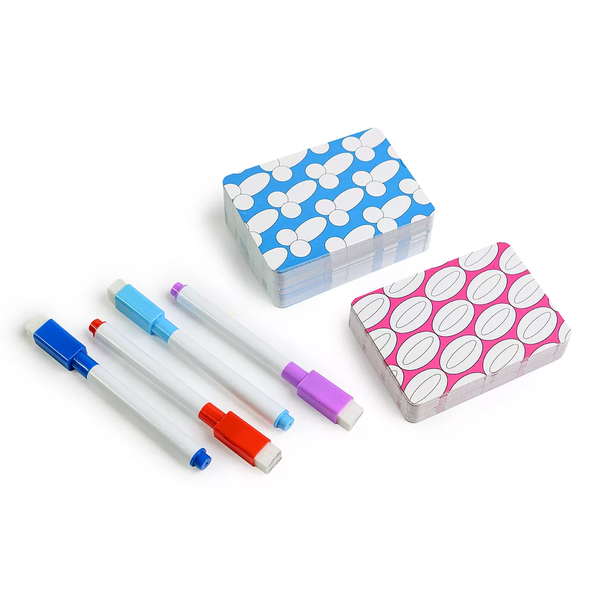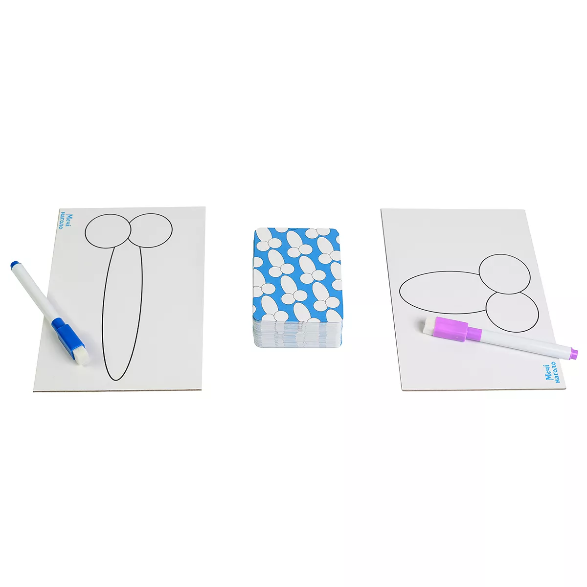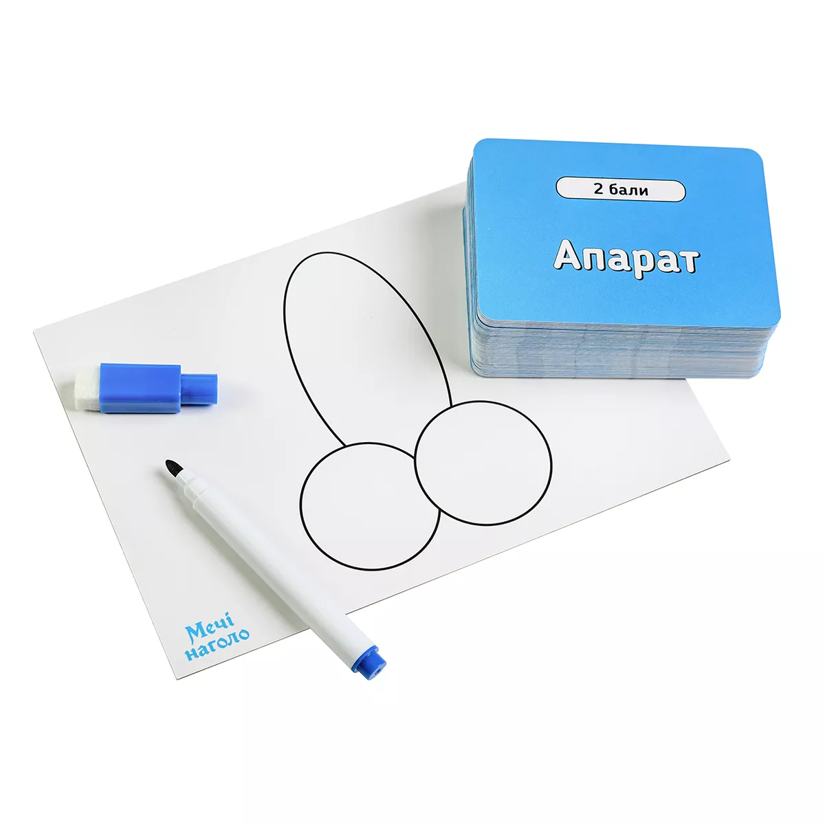 Розділіться на дві команди та в кожній оберіть першого художника. Візьміть по планшету з «мечем» й маркеру. Перетасуйте колоду синіх карт і покладіть у центрі долілиць.