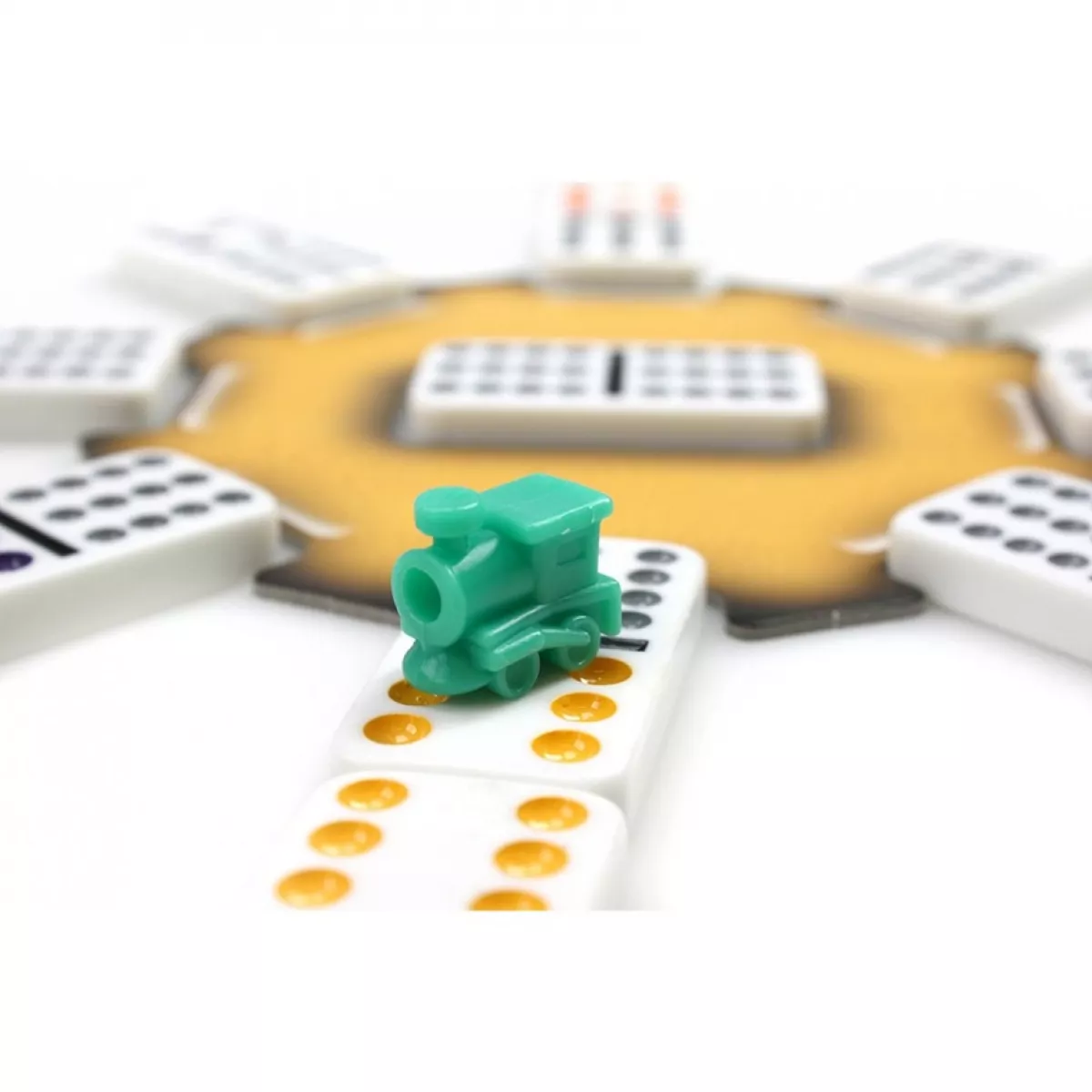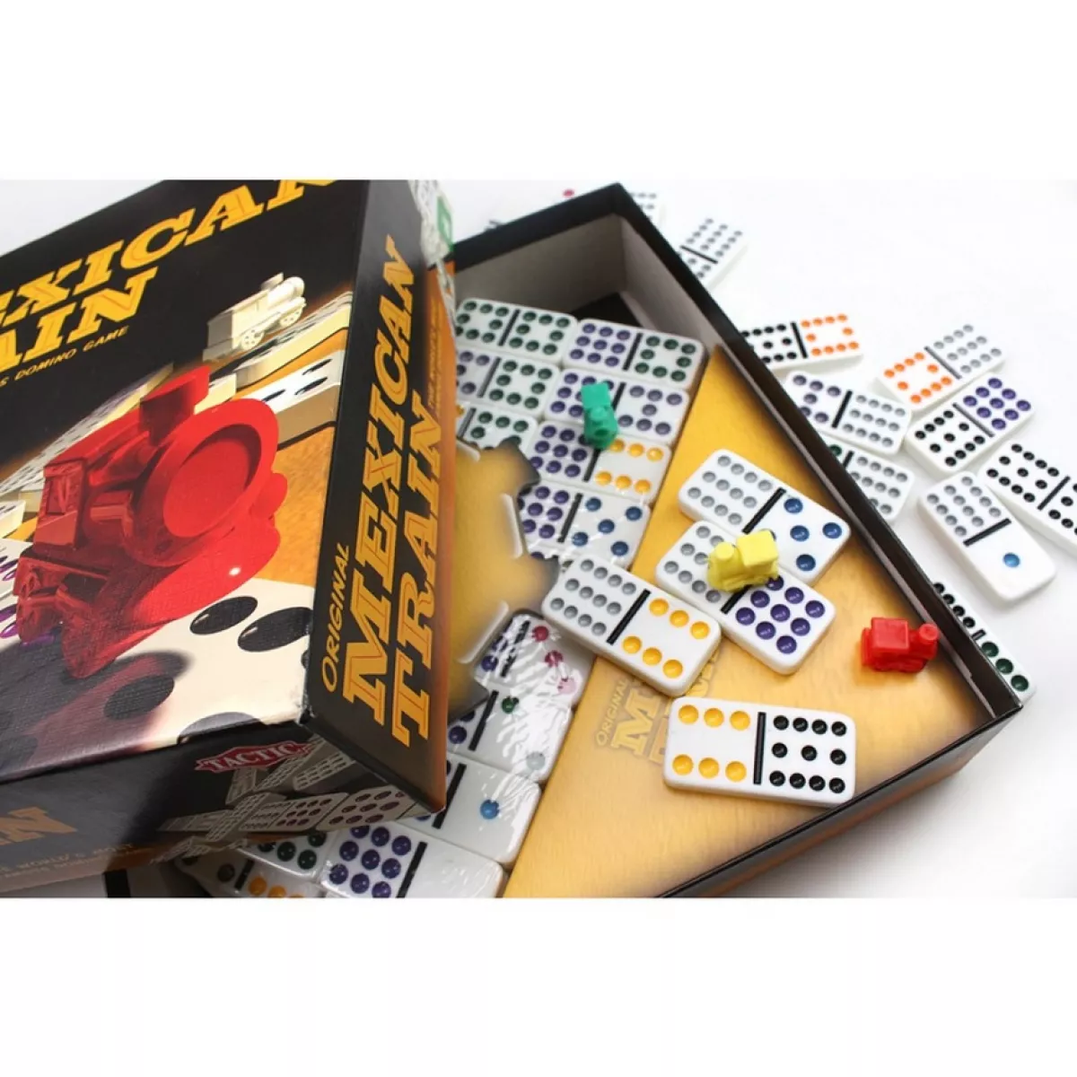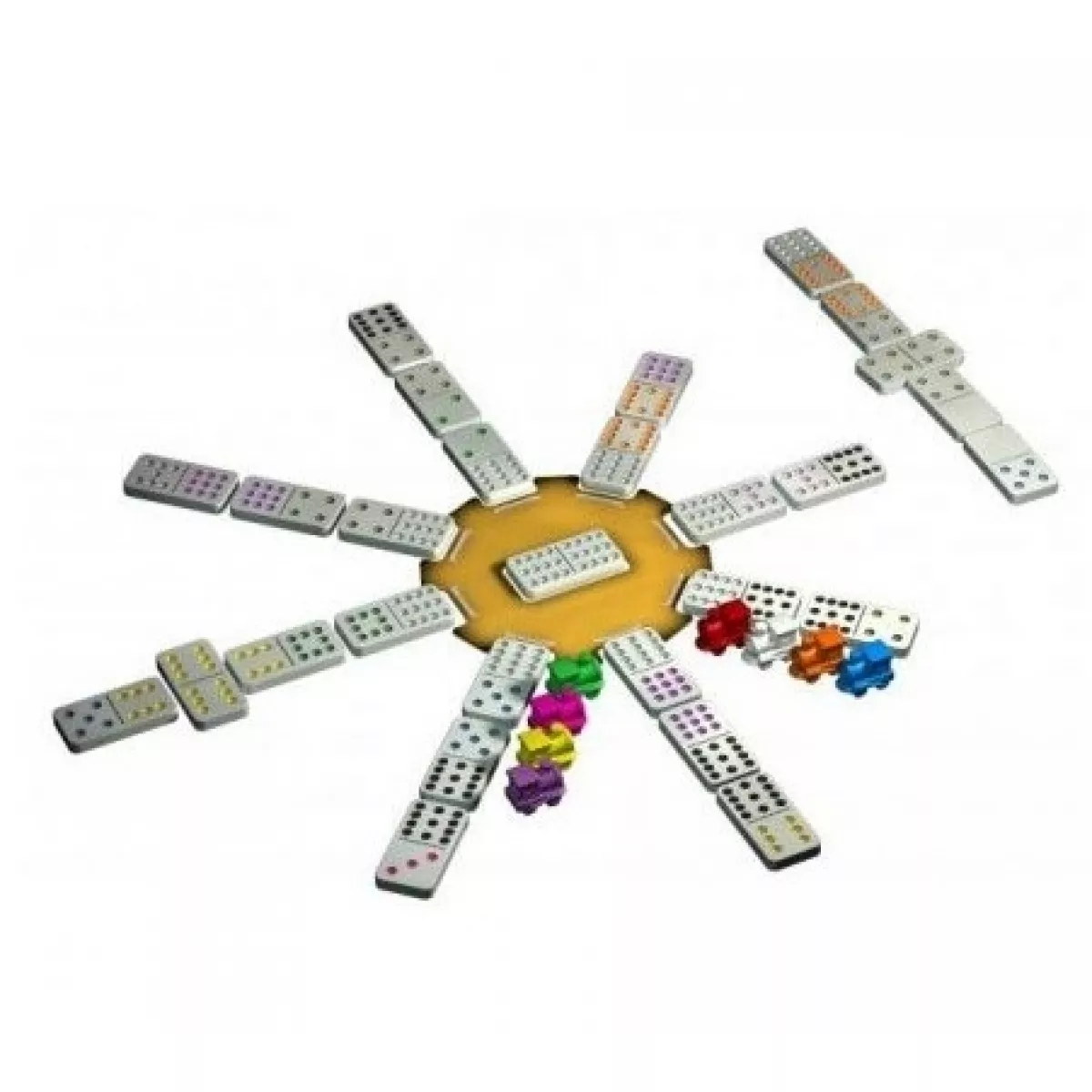 Так, вам не здалося, це варіація Доміно. Але яка ж цікава та яскрава! Перевагами такого ігрового набору є можливість грати до 8 людей, фіксоване ігрове поле, фігурки потягів, та великі числа на фішках, що робить гру більш захоплюючою. Адже для перемоги треба саме позбутися максимальних значень, щоб наприкінці гри залишилась якомога менша сума на фішках в залишку.