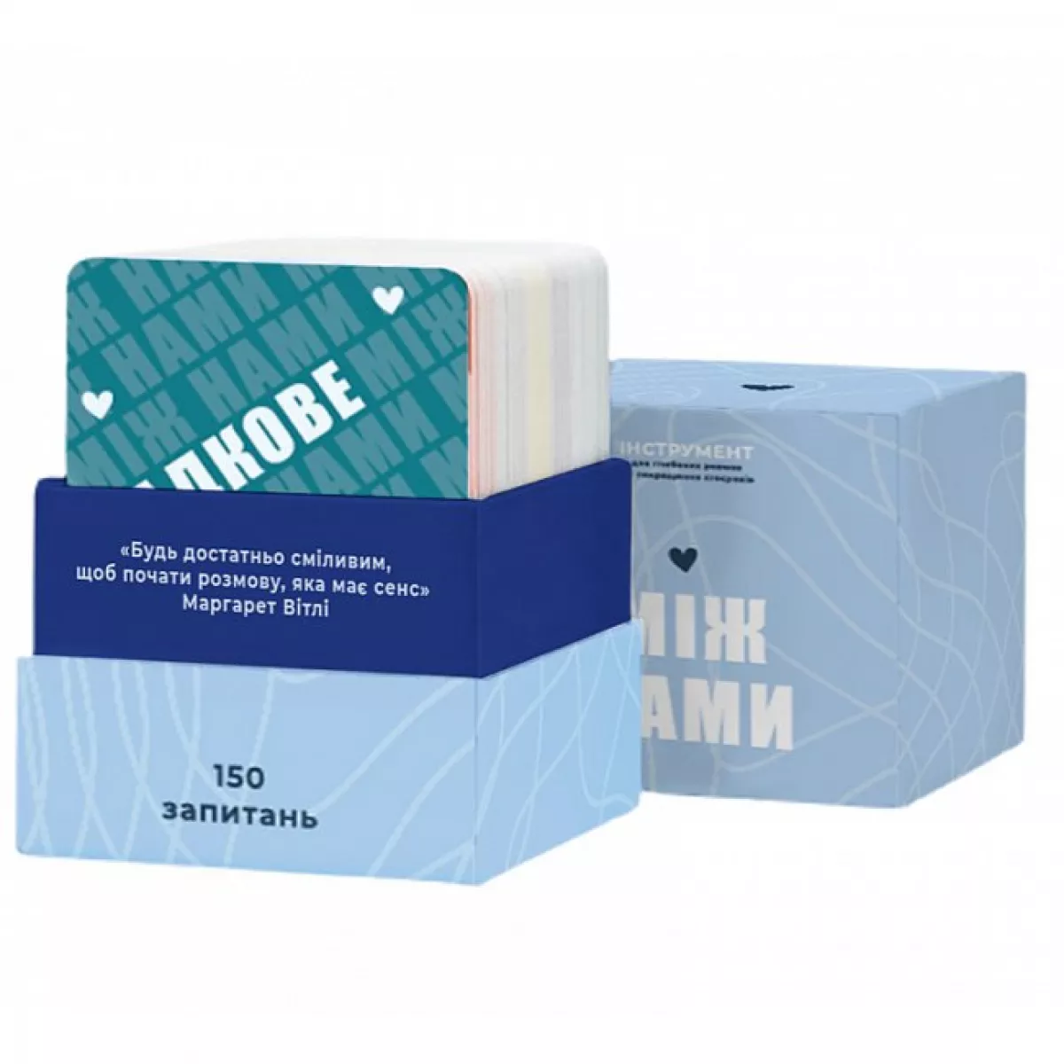 "Між нами" — классична настільна карткова гра, яка стане чудовим інструментом для покращення і поглиблення стосунків, пізнання одне одного та відвертих розмов. Вона якнайкраще підійде для гри зі своїм партнером, друзями або в колі сім‘ї.