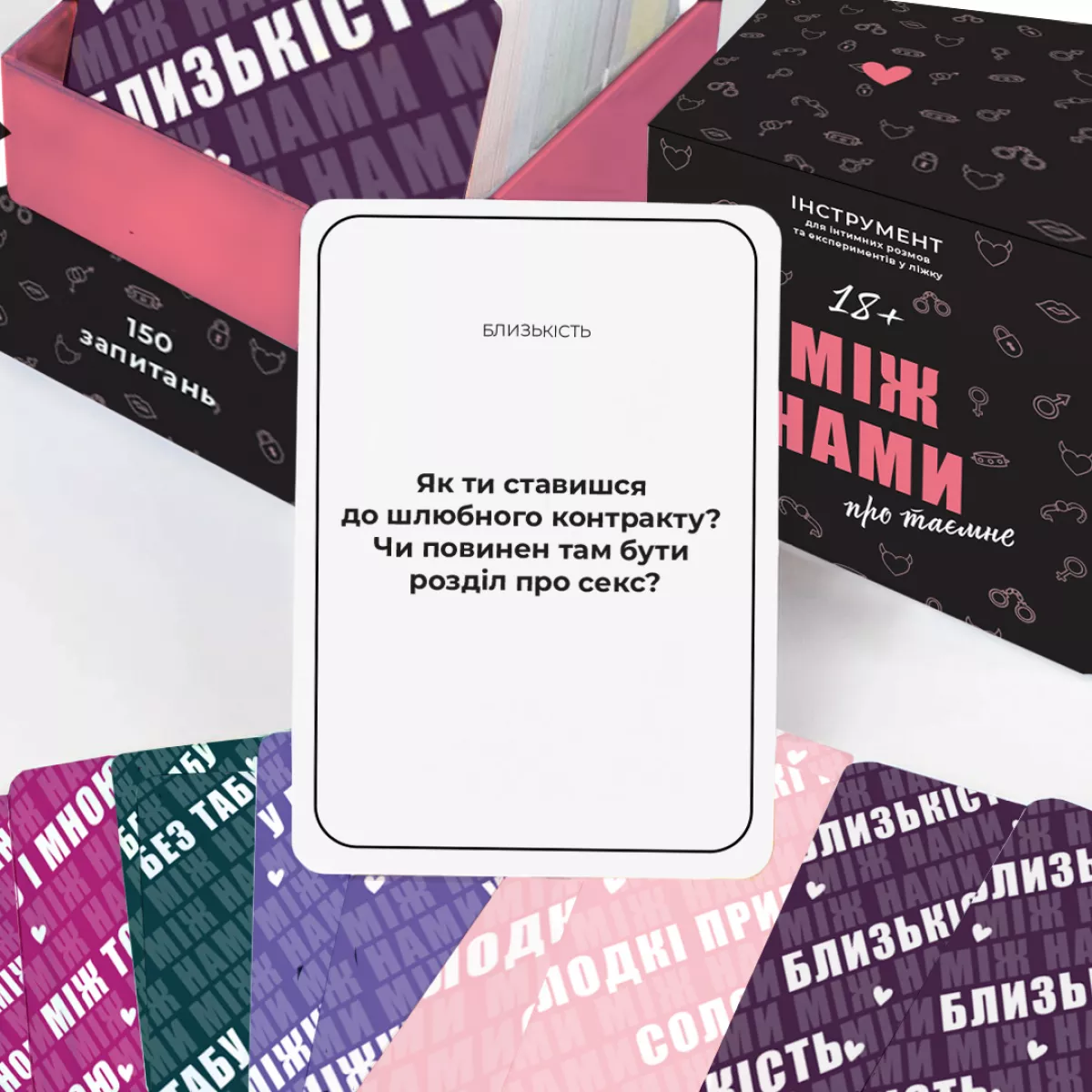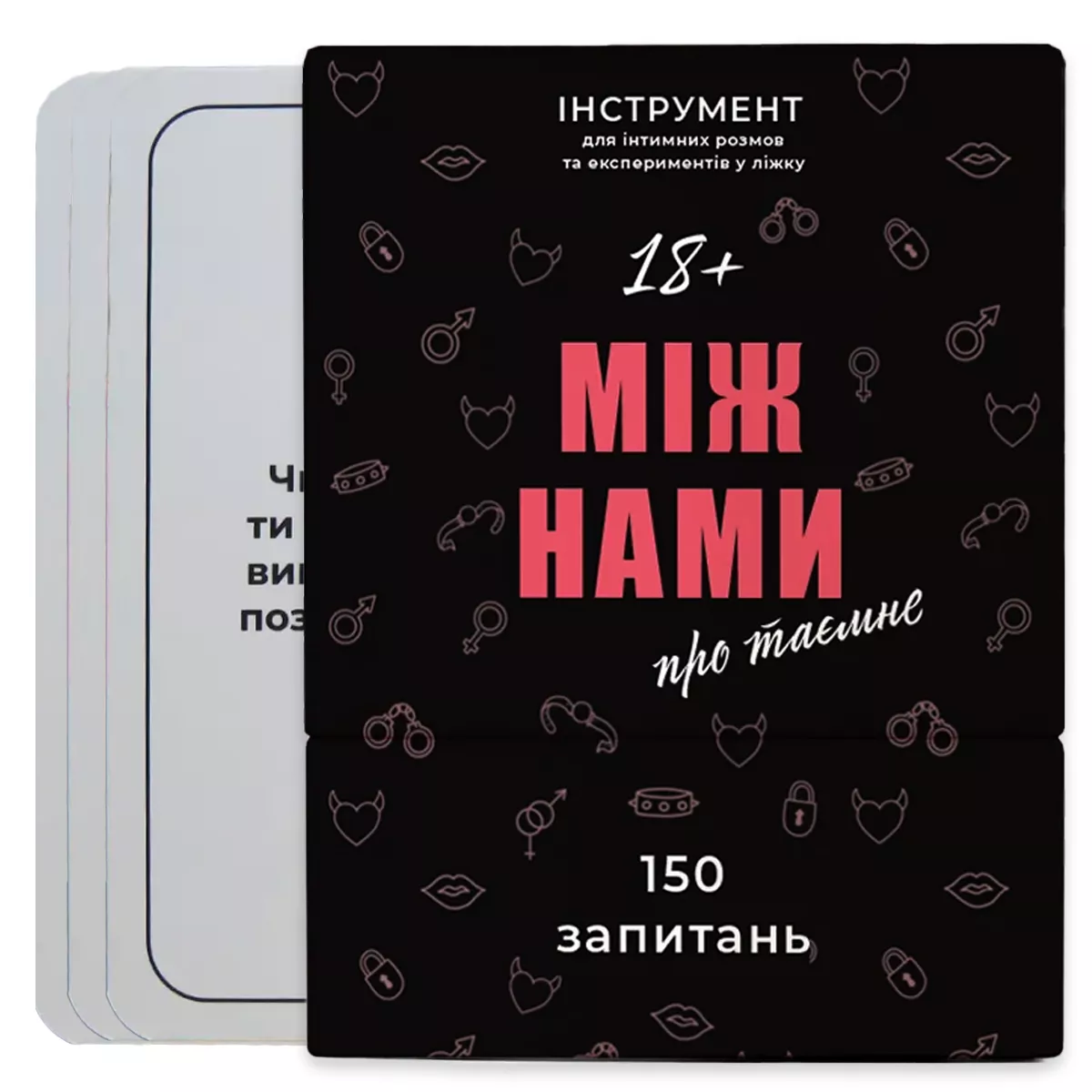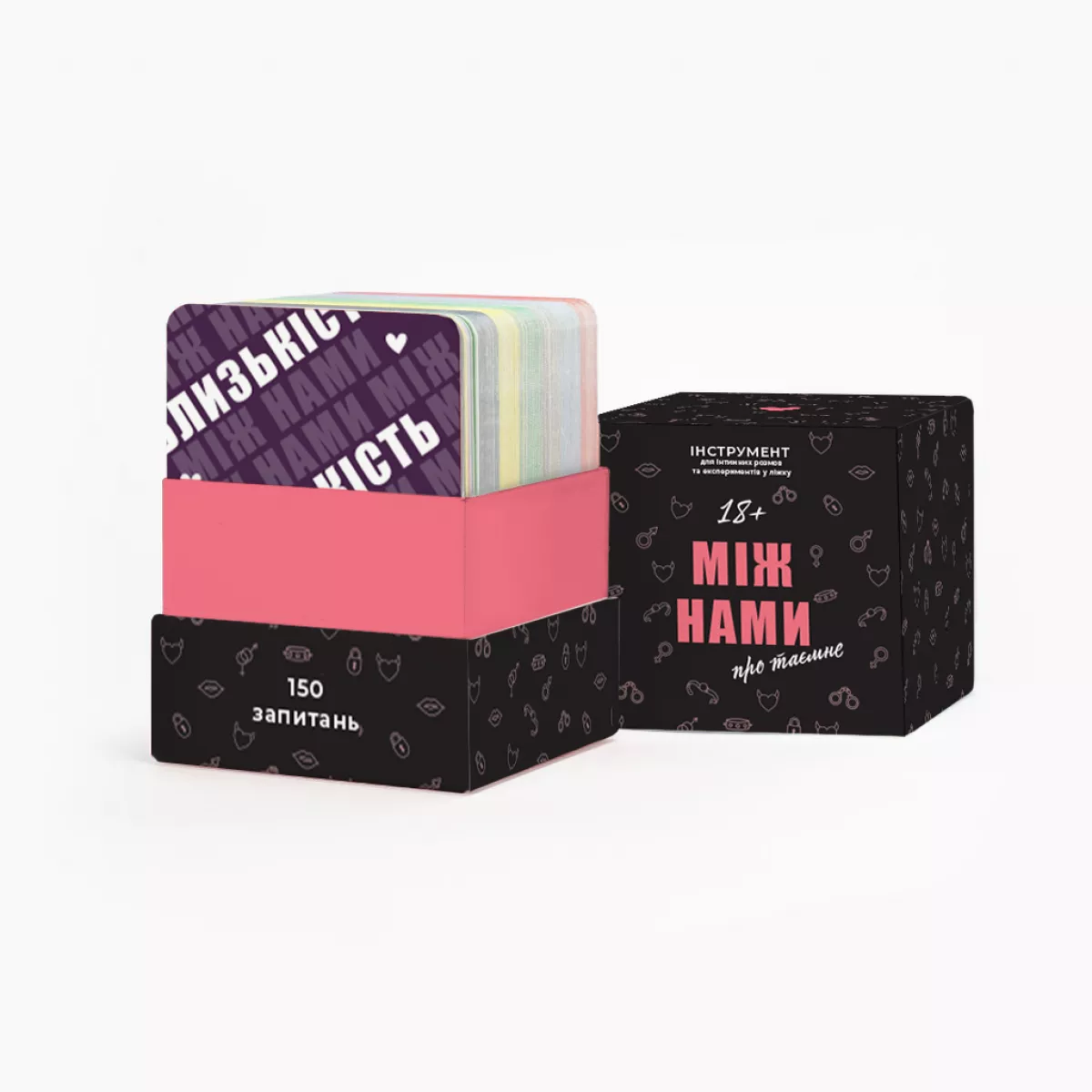 "Між нами: Про таємне" – пікантна карткова гра для пари, яка надасть гостроти інтимним стосункам, підштовхне до яскравих експериментів у ліжку та зміцнить емоційну близькість.