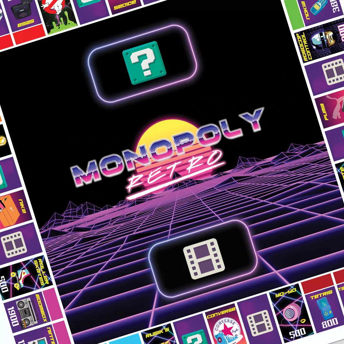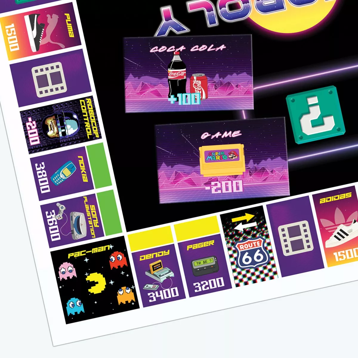 "Монополія Ретро" — це унікальна версія всесвітньо відомої гри, яка переносить учасників у часи безтурботної молодості та дитинства. З неоновим дизайном і ретро-предметами, гра дарує подорож у минуле, де ви зможете придбати Тамагочі і стареньку Моторолу, відео-магнітолу, пейджер, та інші раритети.