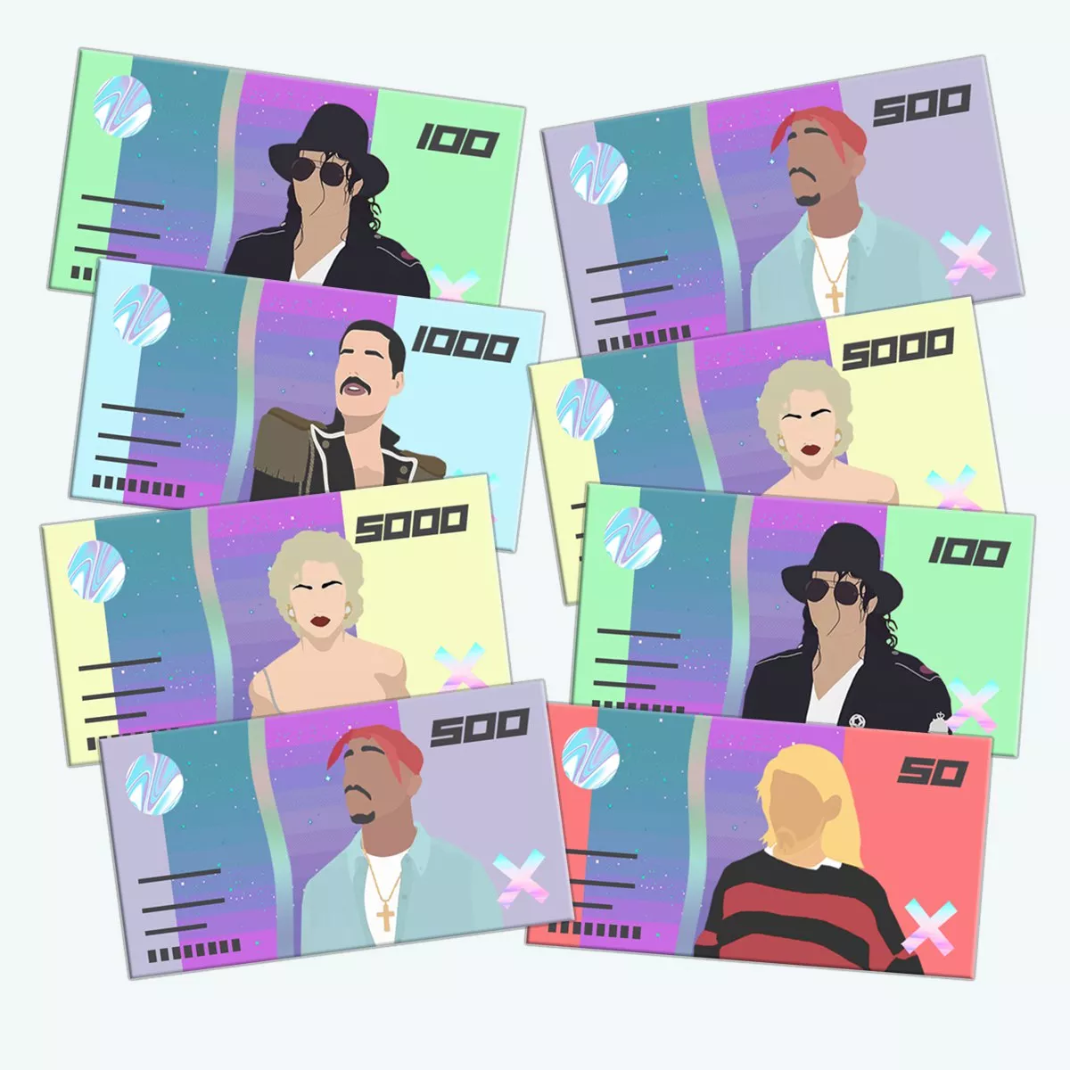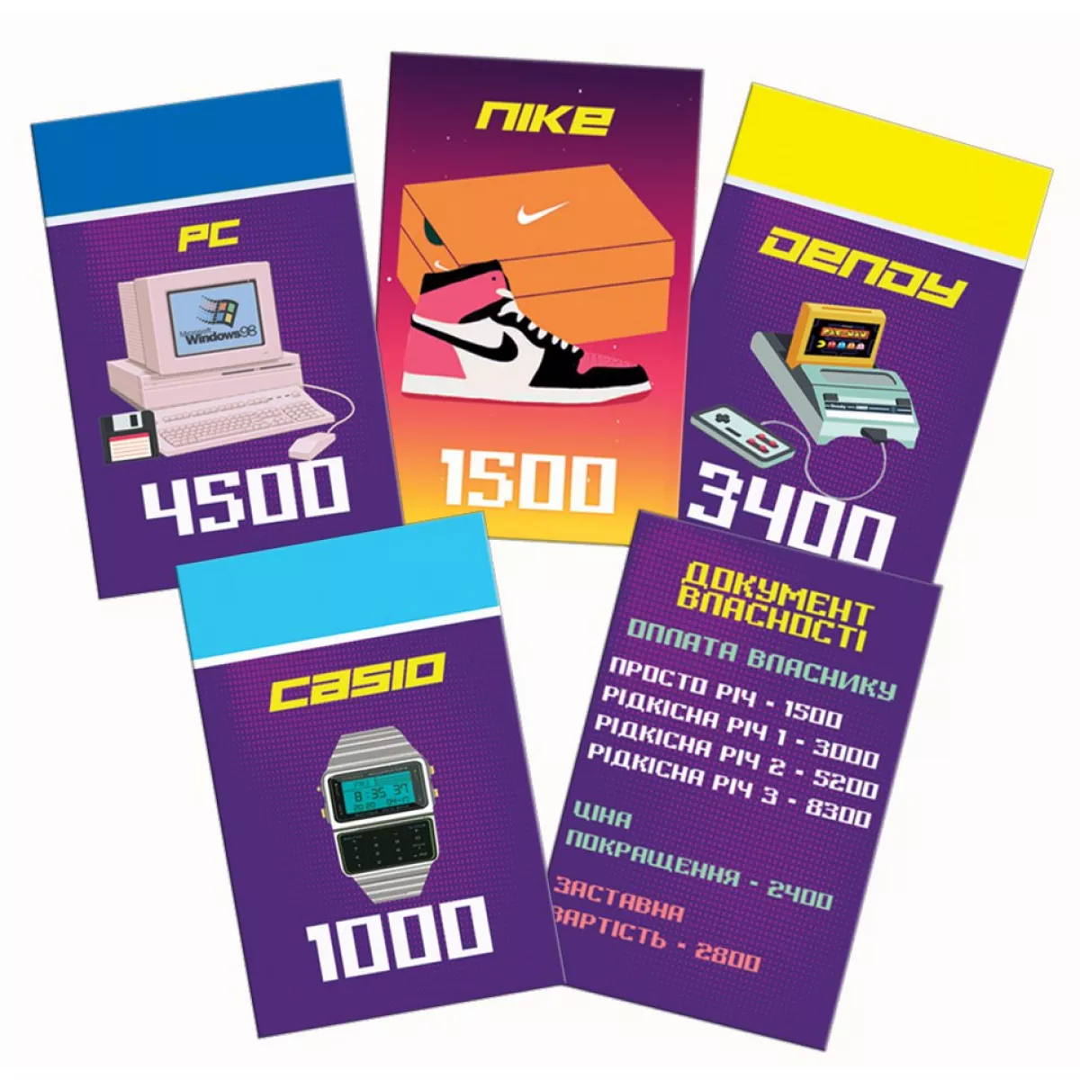 • Купюри та стікери: У комплекті купюри з відомими особистостями епохи та набір стікерів у стилі 90-х.