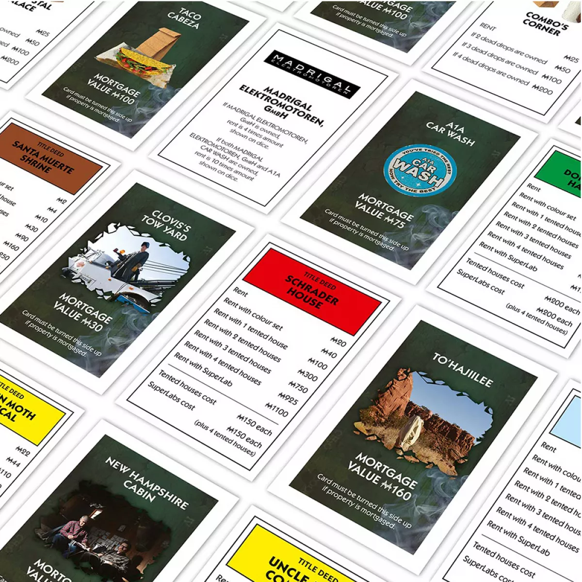 Картки "Шанс" та "Громадська скарбниця" замінені на "Рецидив" та "Командуй", що додає грі несподіваних поворотів, які ідеально вписуються в сюжетну логіку серіалу. Будьте готові до непередбачуваних зустрічей з картелем, податковими перевірками DEA або ж до можливості отримати несподіваний прибуток від чергової "угоди". Ці картки можуть як принести вам величезні статки, так і призвести до миттєвого краху, змушуючи гравців постійно тримати руку на пульсі та адаптуватися до мінливих обставин.