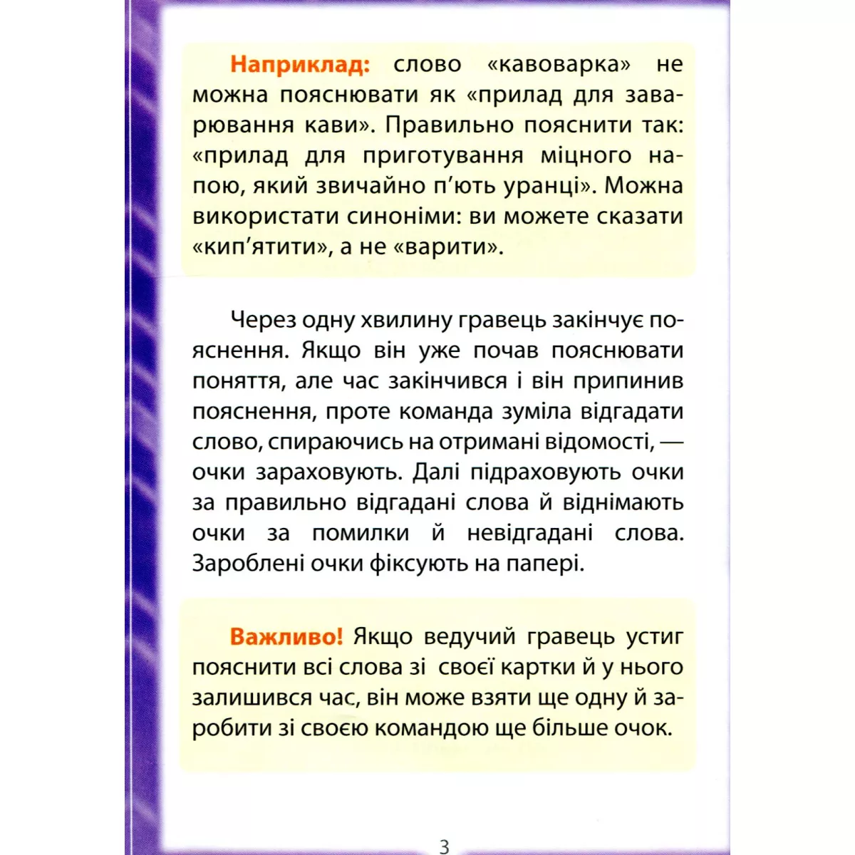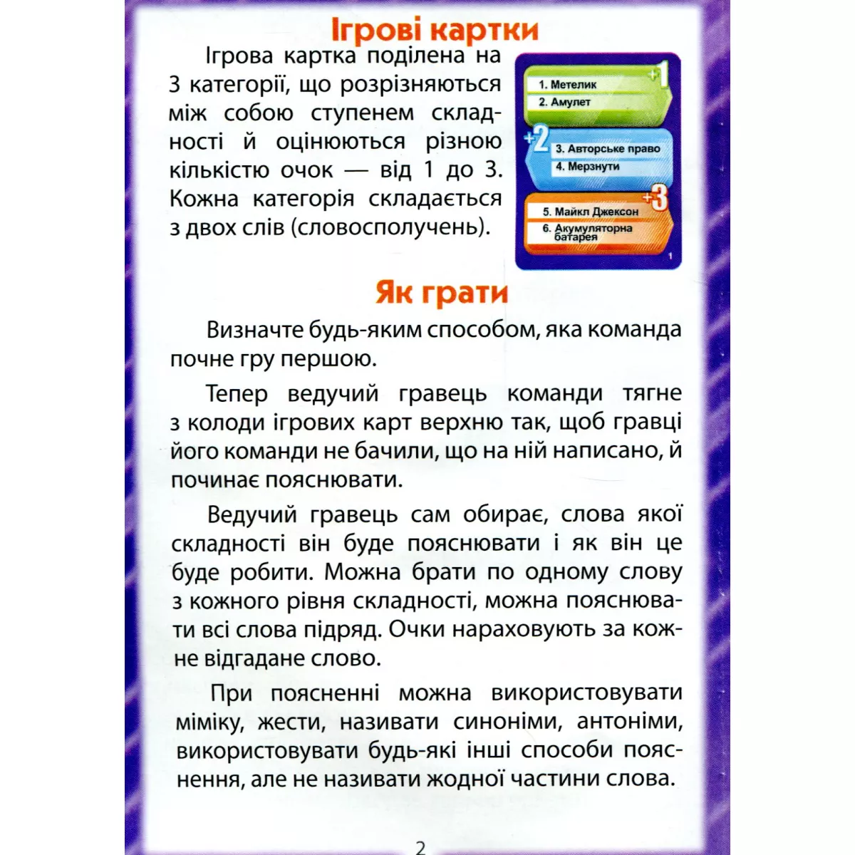 Ця гра - безпрограшний спосіб додати до звичайного вечору купу веселощів та гамору. В ній потрібно пояснювати слова, поділившись на команди. Таким чином, грати можуть від 4 до 16 людей.