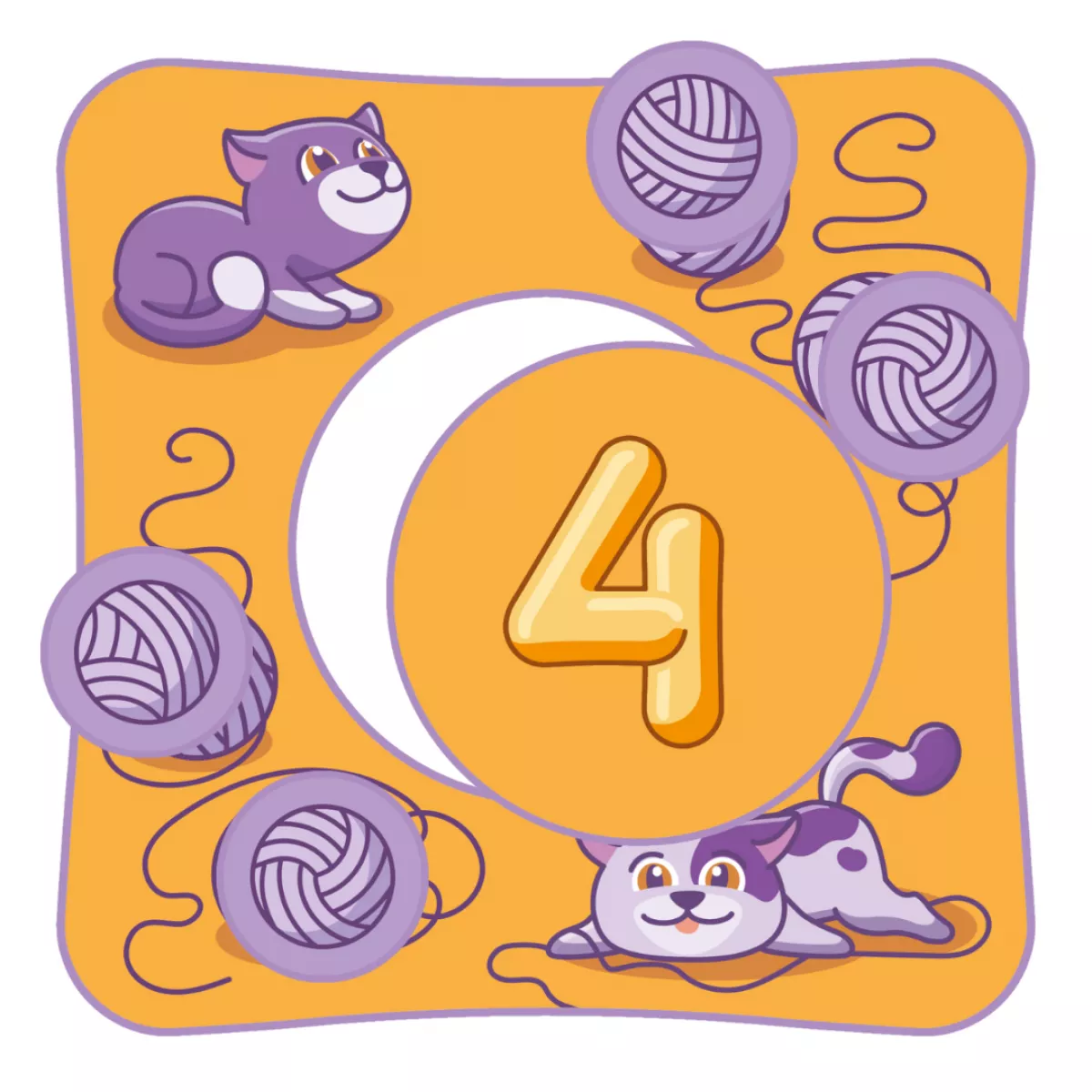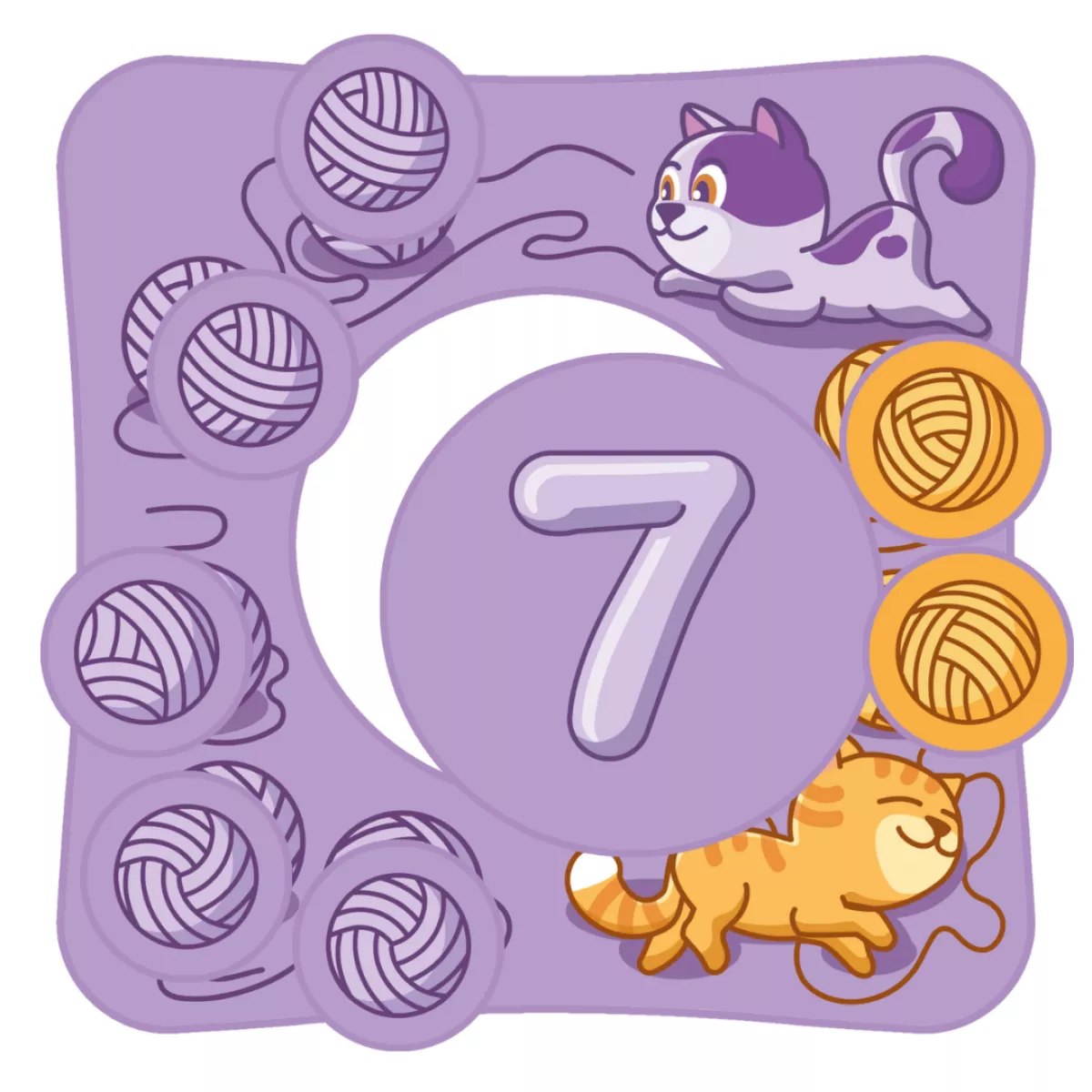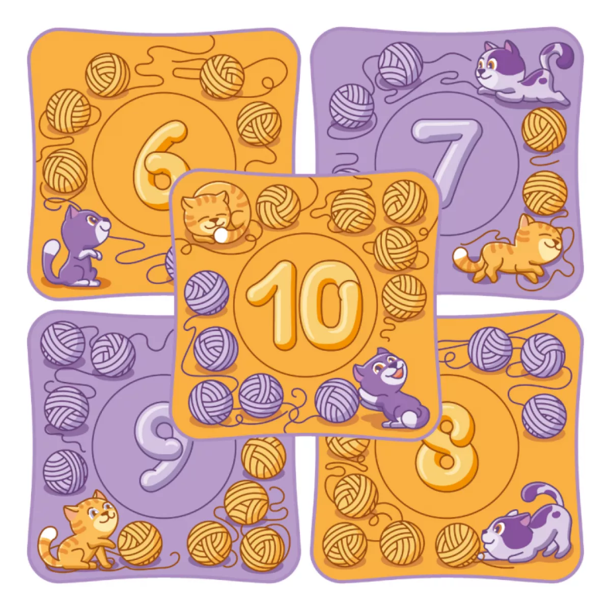 На стіл викладають планшети з числами 1–5. Поруч кладуть 15 вільних клубочків. Гравці по черзі накривають один відкритий клубочок на будь-якому планшеті та озвучують дію в стилі котиків: «Няв, клубочок я поклав».