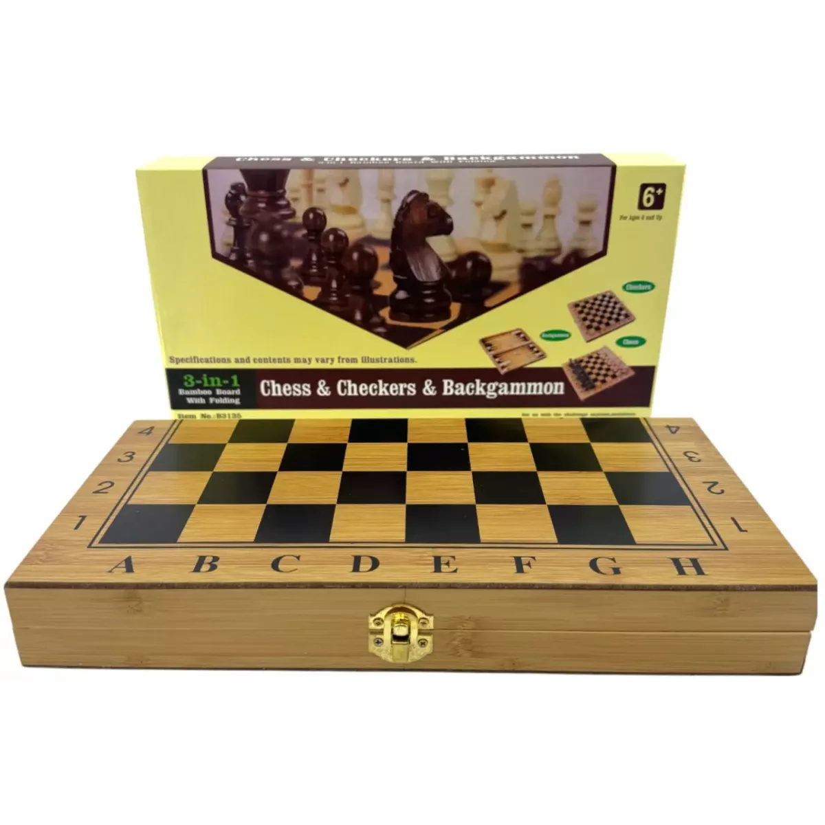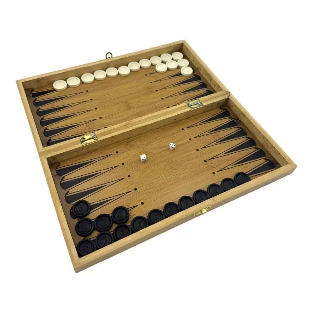 Нарди з шахами і шашками бамбукові (33,5х33,5х2,3 см)