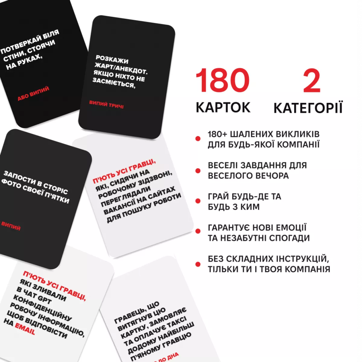 Категорія Для дорослих; Алкогольні; Для компанії; Новачкам; Швидкі; Розмовні
