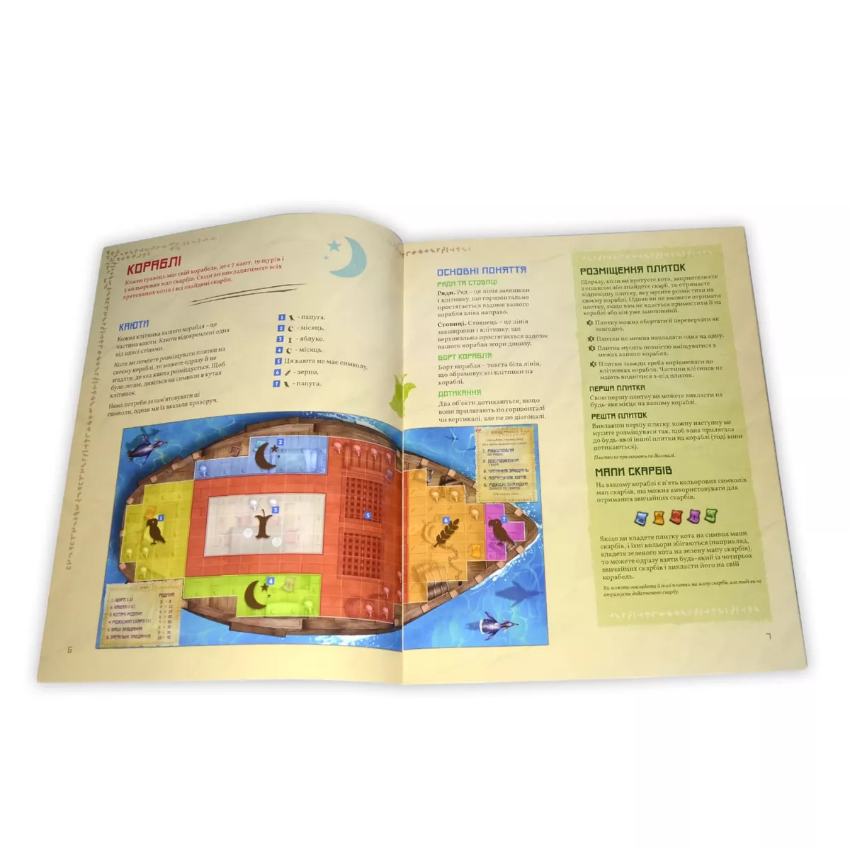 Гравці отримують особисті планшети кораблів і жетони кошиків. Вони вибирають колір котів і по черзі розміщують по одній фігурці свого кота на треку черговості ходів на острові.