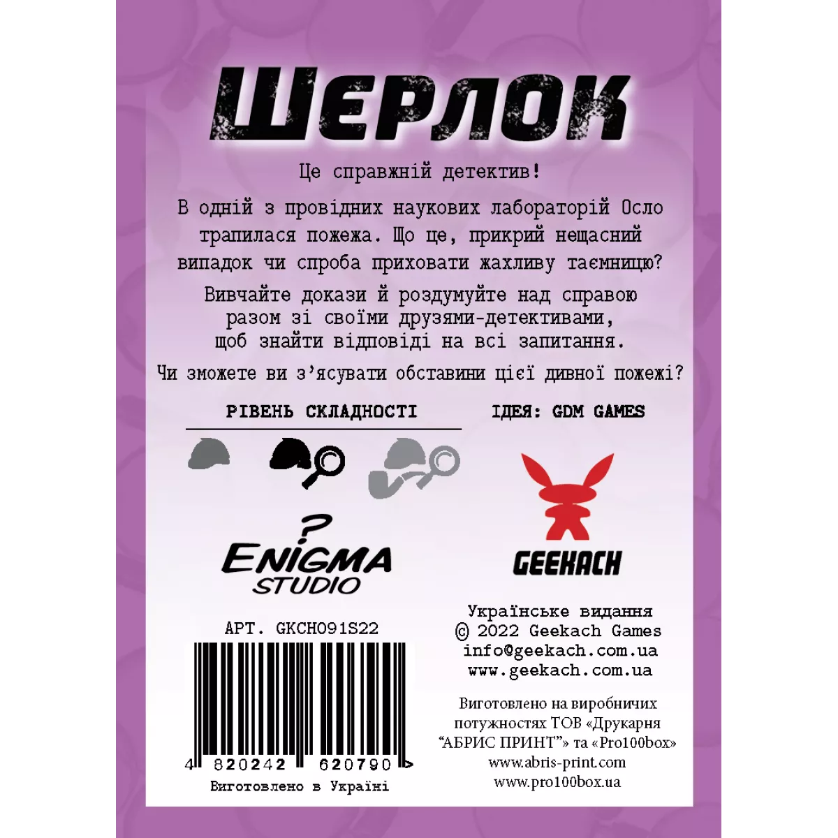 «Sherlock» (також відома як «Елементарно») – популярна серія швидких детективних кооперативів для 1-8 гравців. У 2019 році ця гра стала номінантом престижного конкурсу «Spiel des Jahres» (Гра року в Німеччині). У кожній коробочці гравців чекає окрема справа. Це цікавий детективний філлер, який можна розслідувати соло, з друзями або членами сім’ї. Joy гарантує, що гра сподобається як новачкам, так і досвідченим гравцям.